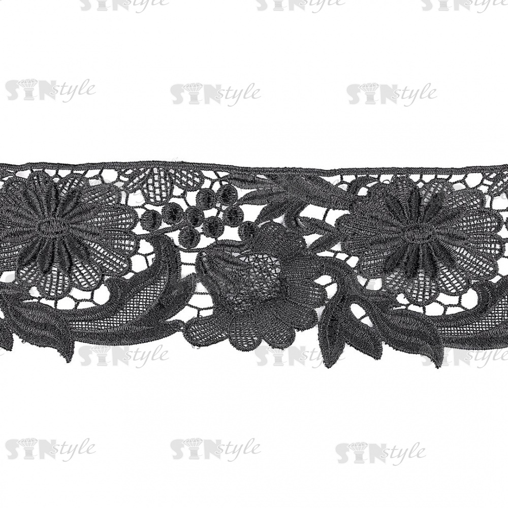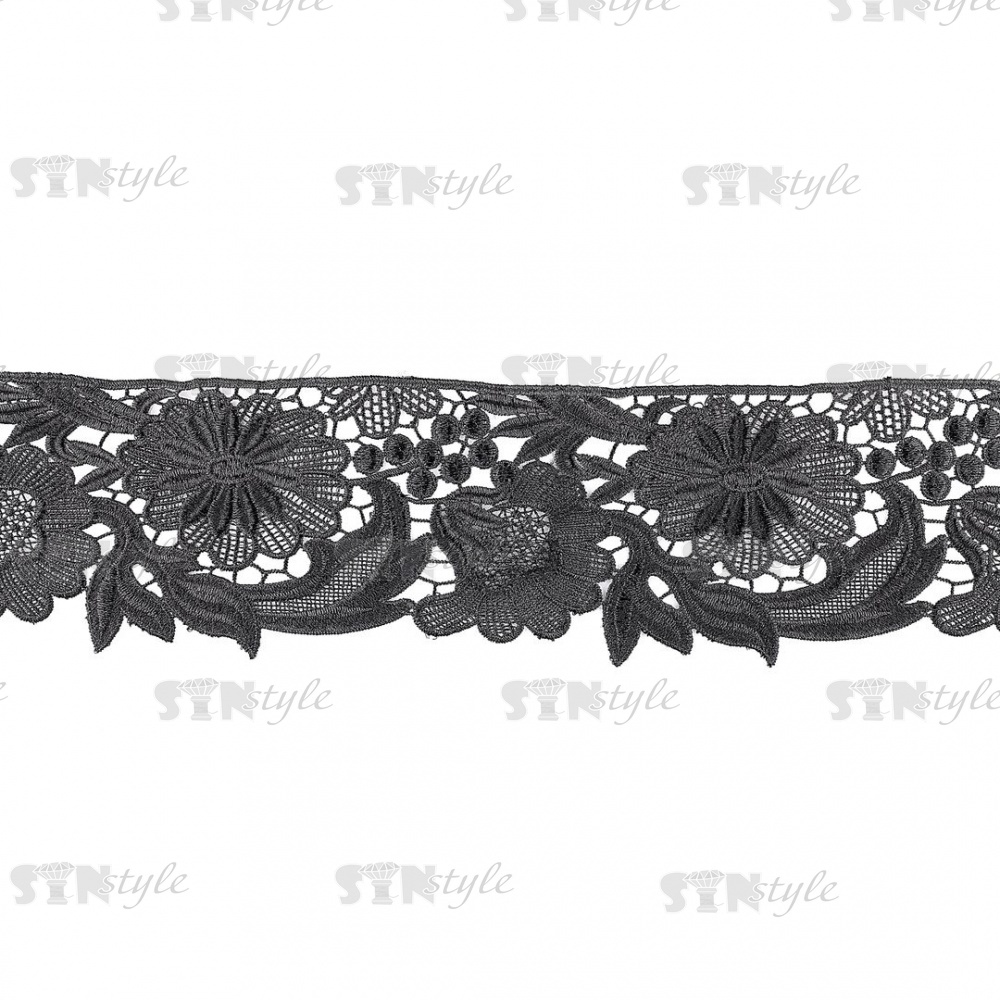 Кружево ажурное, нежная цветочная гирлянда с резным краем, ширина 110 мм, цвет черный, намотка 15 ярдов