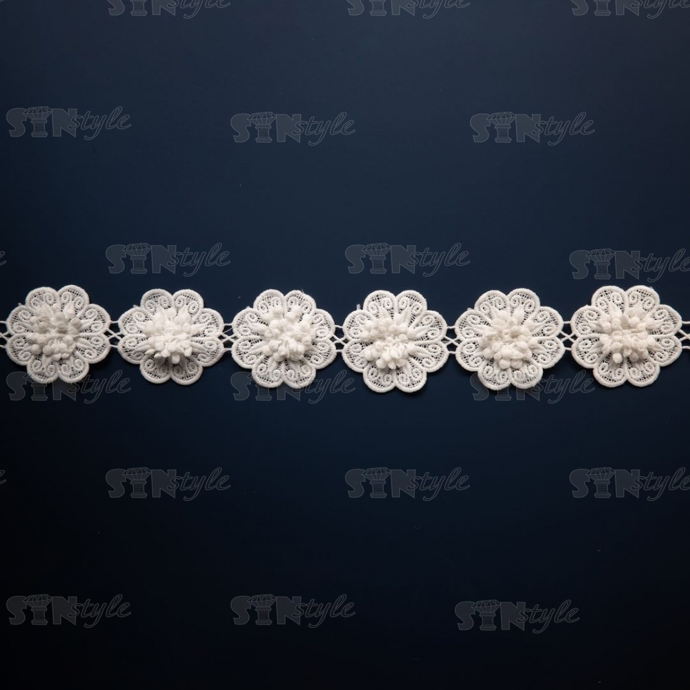 Кружево "Цветочное", на нежной ажурной основе россыпь объемных цветов, ширина 60 мм, цвет белый, намотка 15 ярдов
