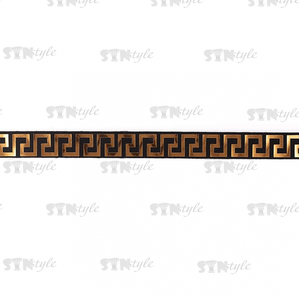 Отделочная тесьма с объемным тиснением фольгой, ширина 20 мм, черная основа с золотой фольгой, намотка 10 ярдов