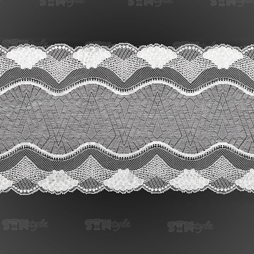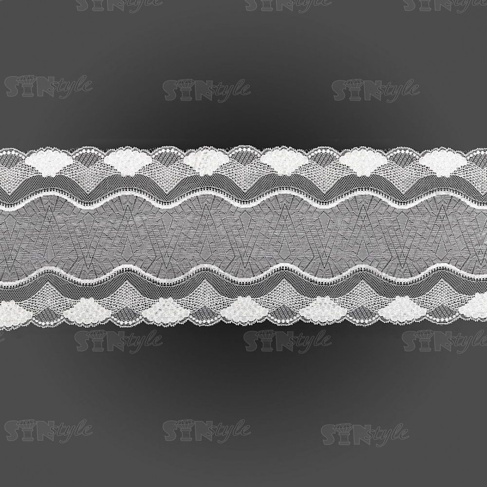 Кружево эластичное, ширина 190 мм, цвет белый, намотка 15 ярдов