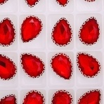 Стразы пришивные стеклянные в оправе, форма капля, цвет серебро+красный, размер 10х14 мм