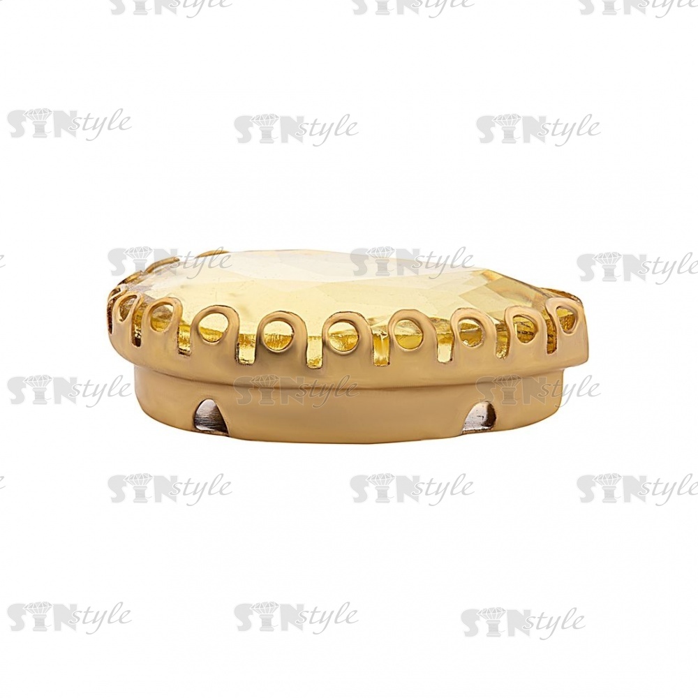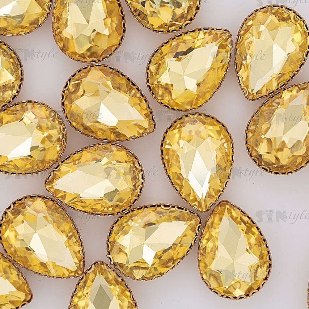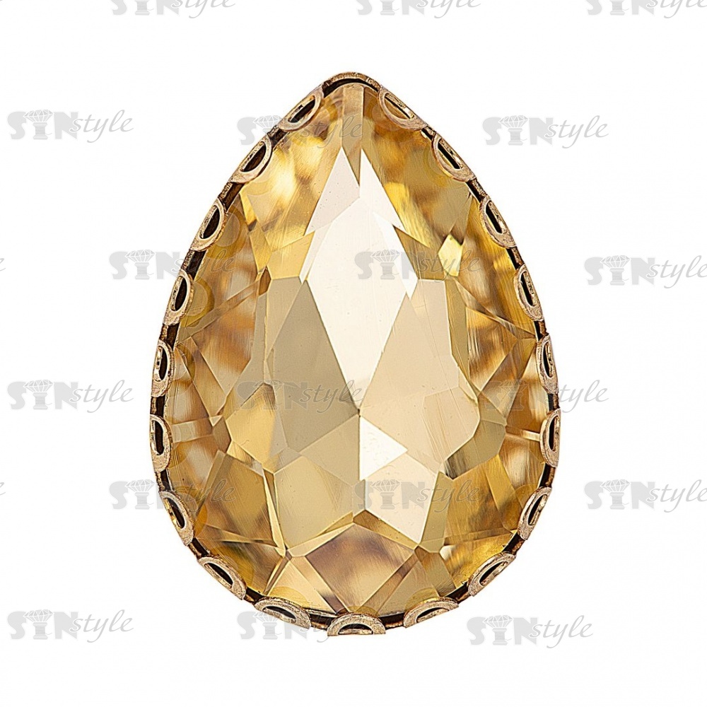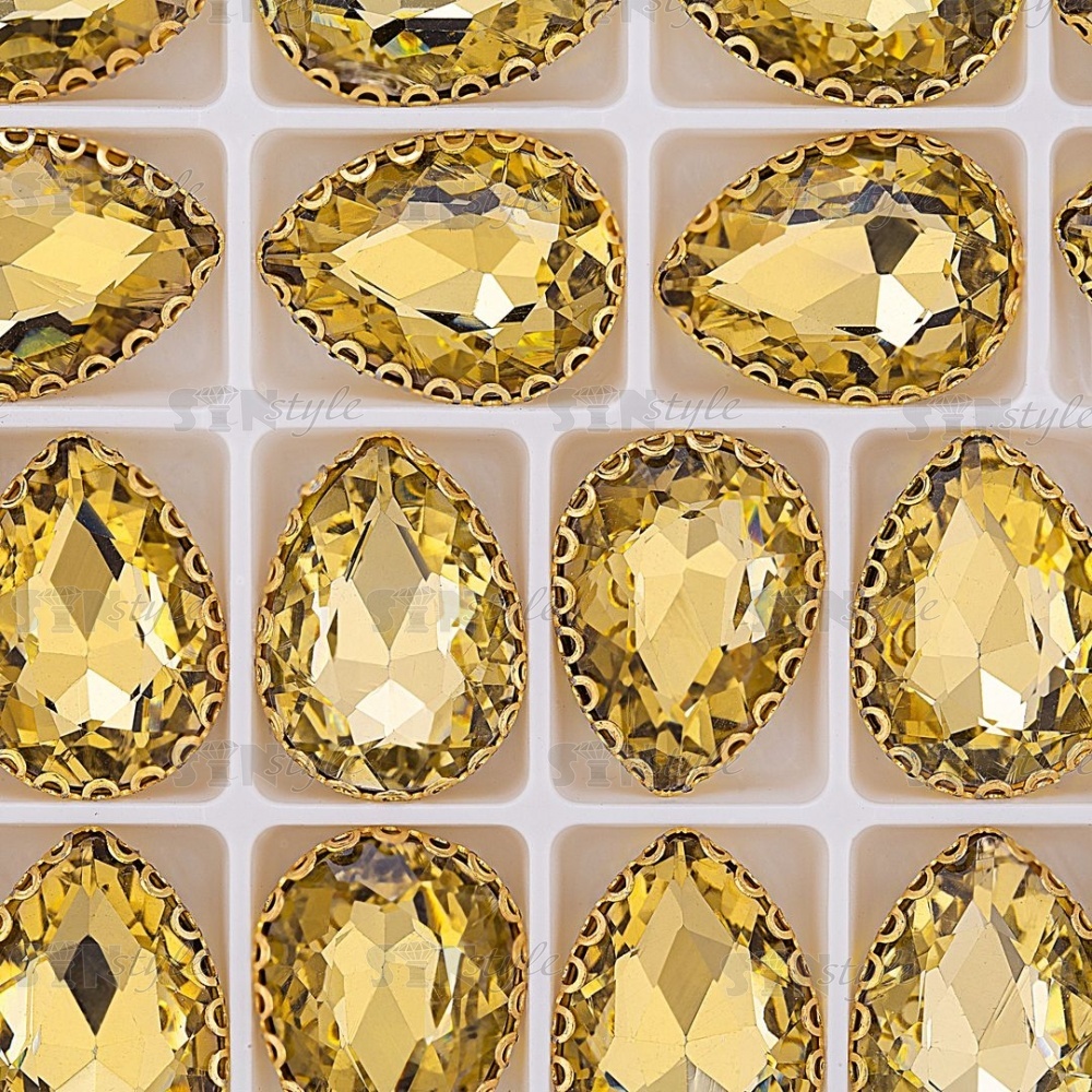 Стразы пришивные стеклянные в оправе, форма капля, цвет золото+шампань, размер 10х14 мм