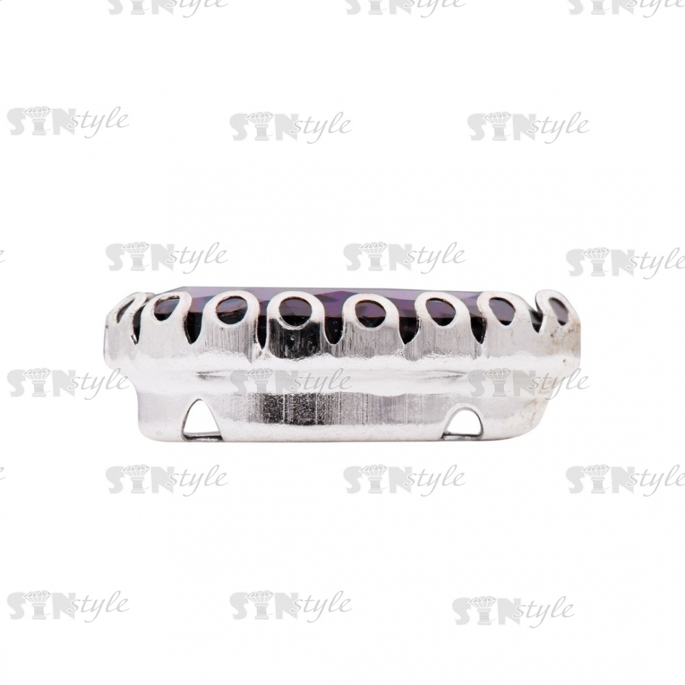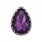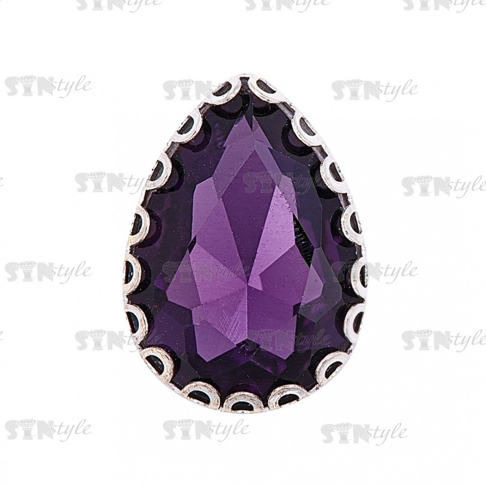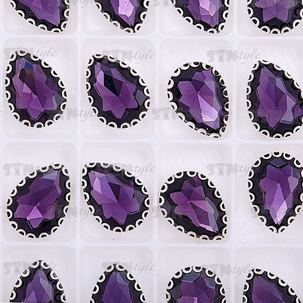 Стразы пришивные, стеклянные в оправе, форма капля, цвет серебро+фиолетовый, размер 10х14 мм