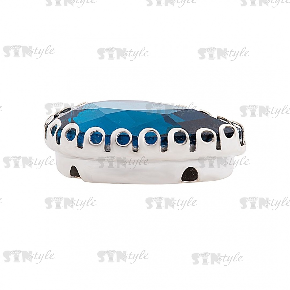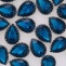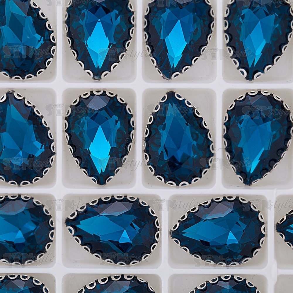 Стразы пришивные, стеклянные в оправе, форма капля, цвет серебро+темно-бирюзовый, размер 13*18 мм