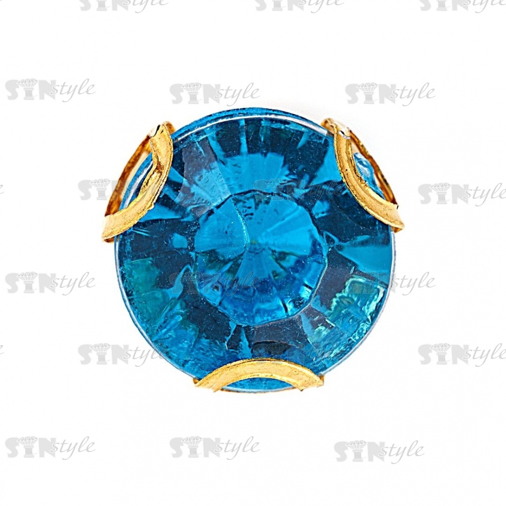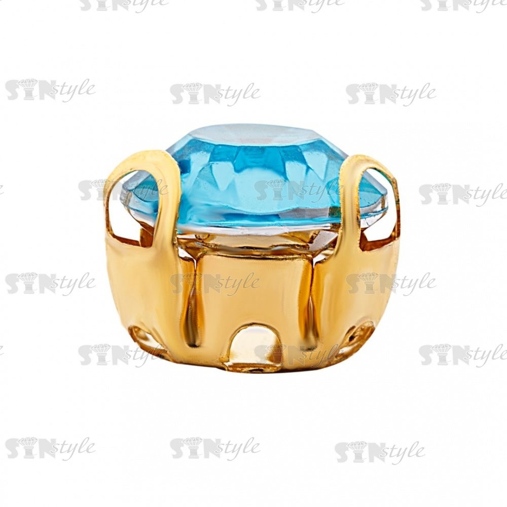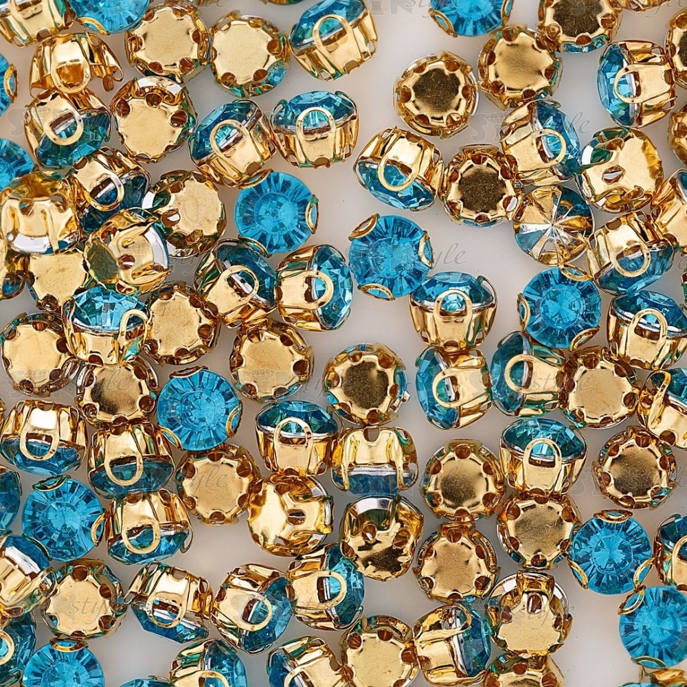 Стразы пришивные акриловые в цапах, форма круг, цвет золото+голубой, диаметр 7 мм, 720 шт/уп.