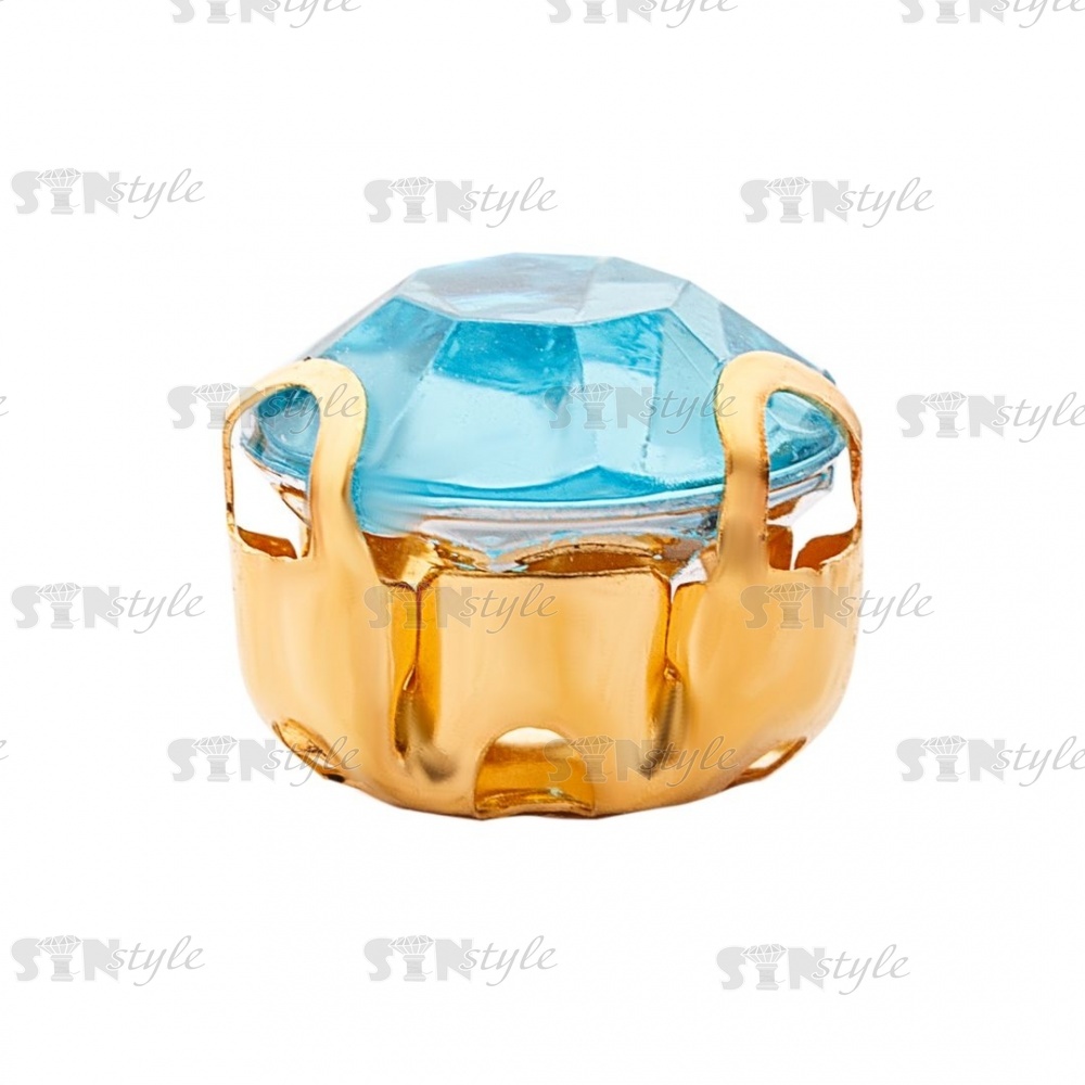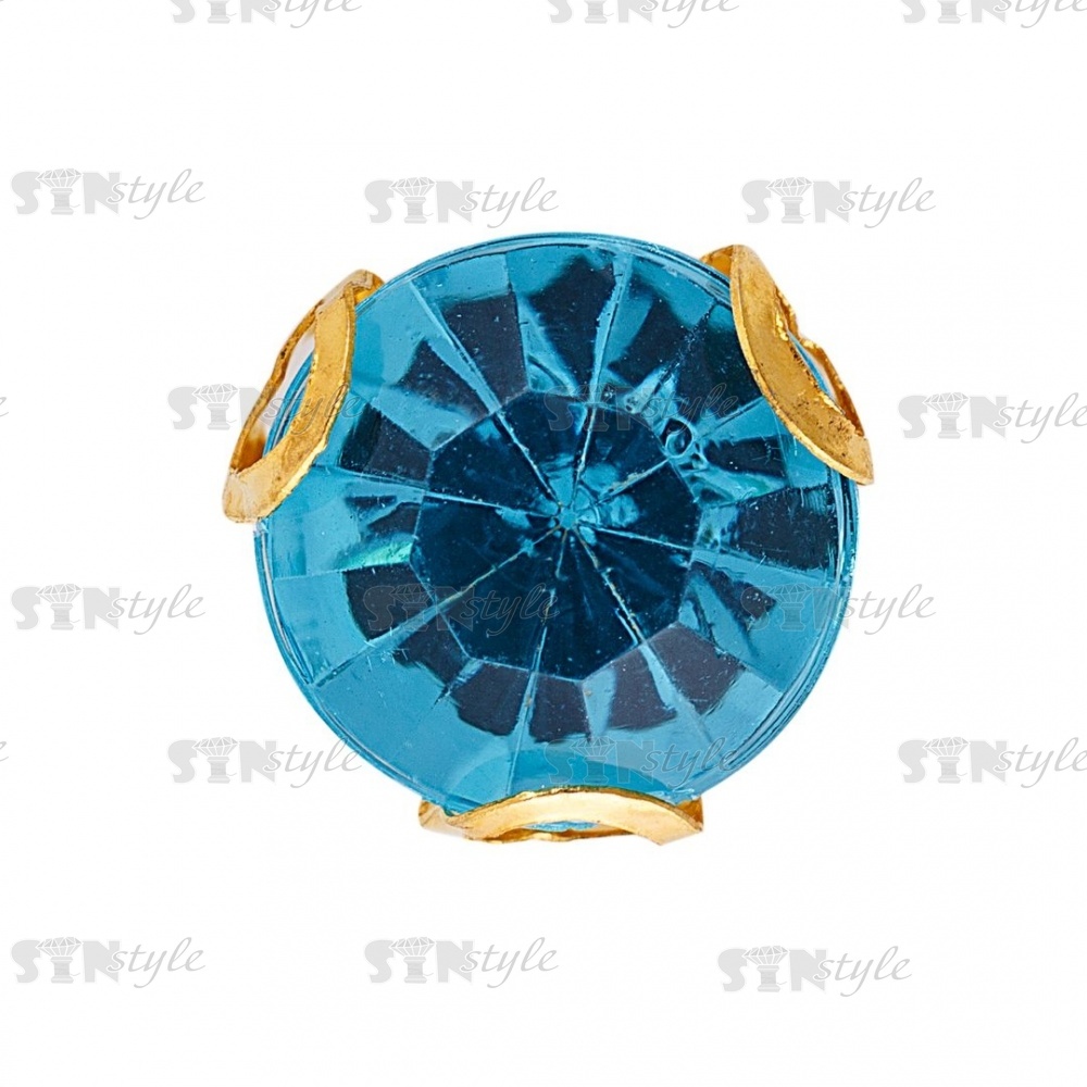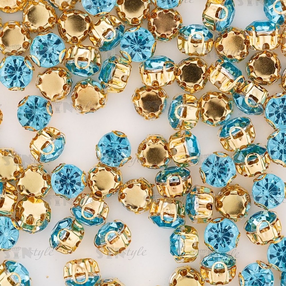 Стразы пришивные акриловые в цапах, форма круг, цвет золото+темно-голубой, диаметр 7 мм, 720 шт/уп.