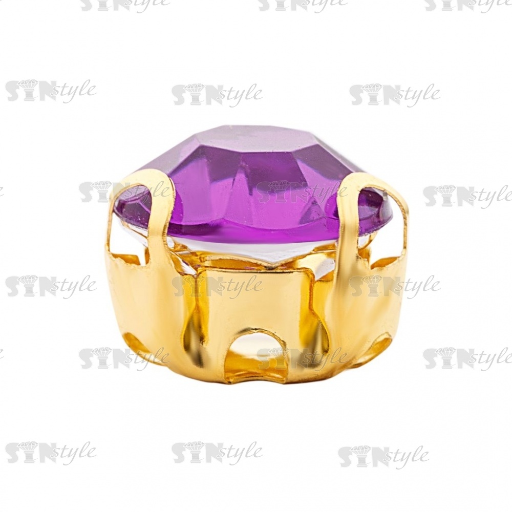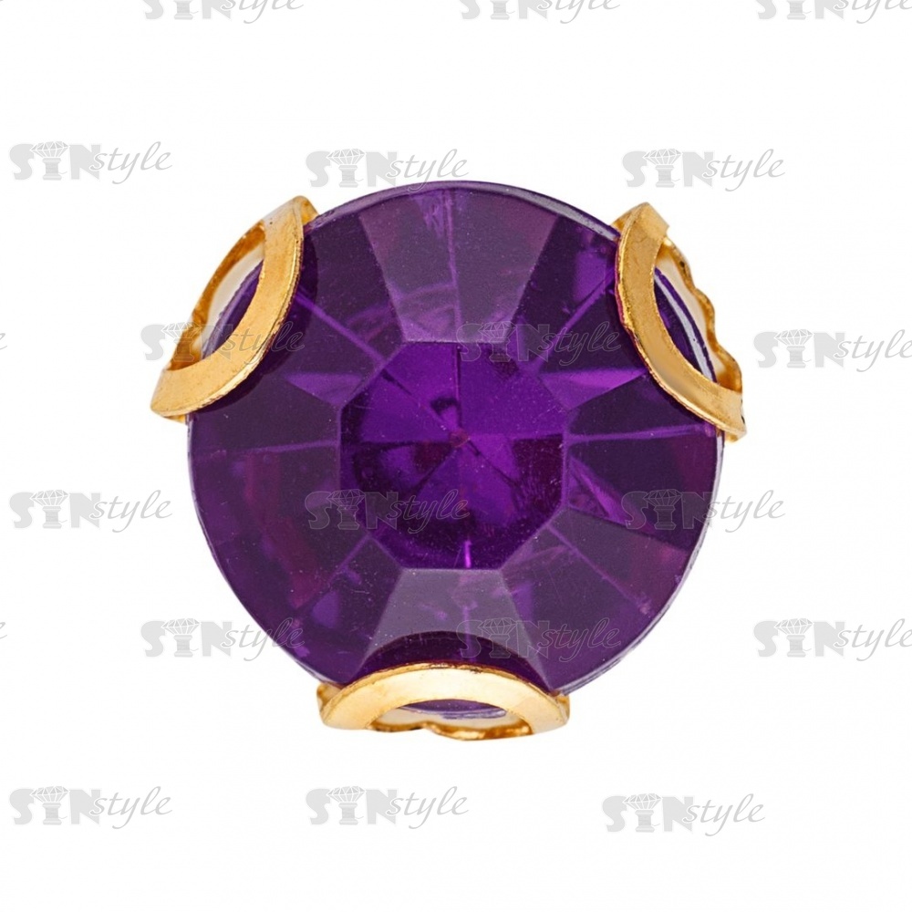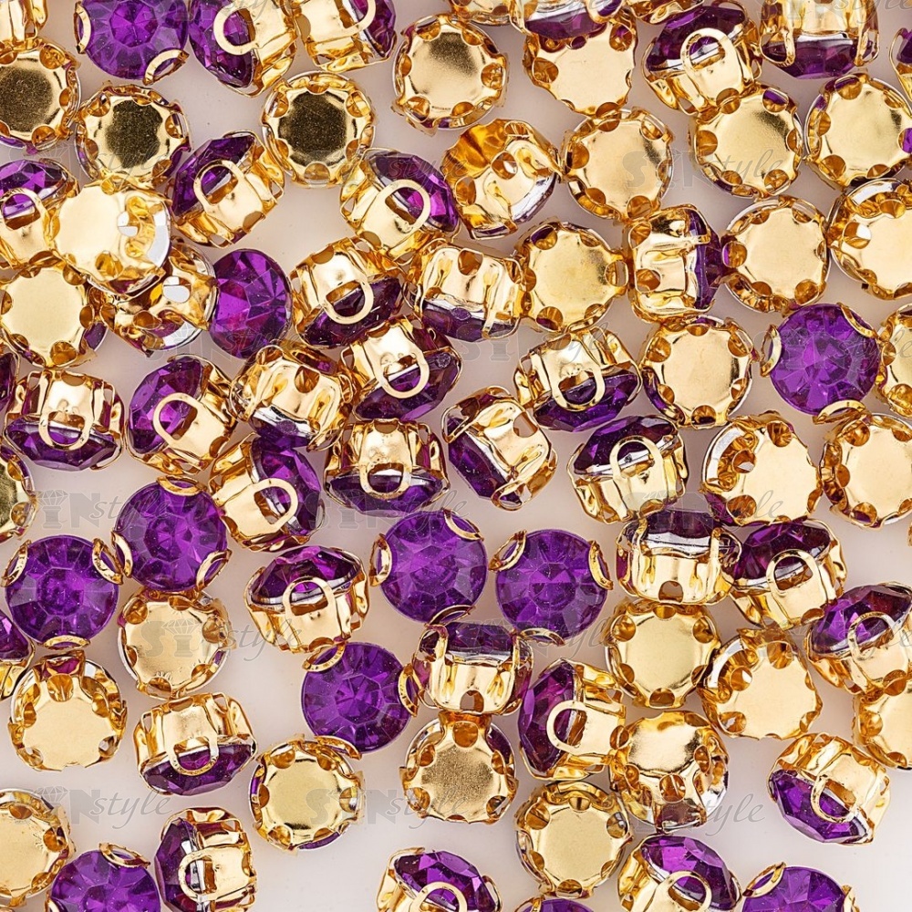 Стразы пришивные акриловые в цапах, форма круг, цвет золото+фиолетовый, диаметр 7 мм, 720 шт/уп.