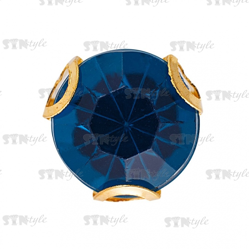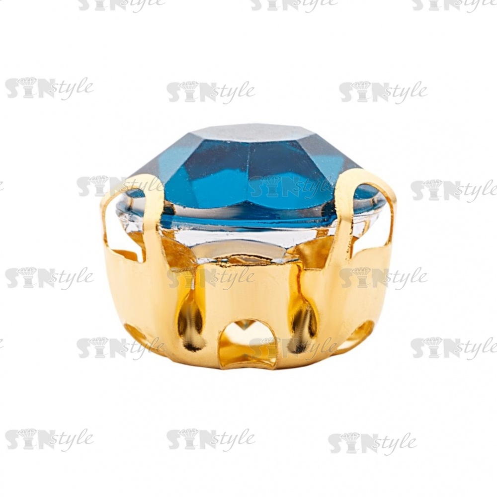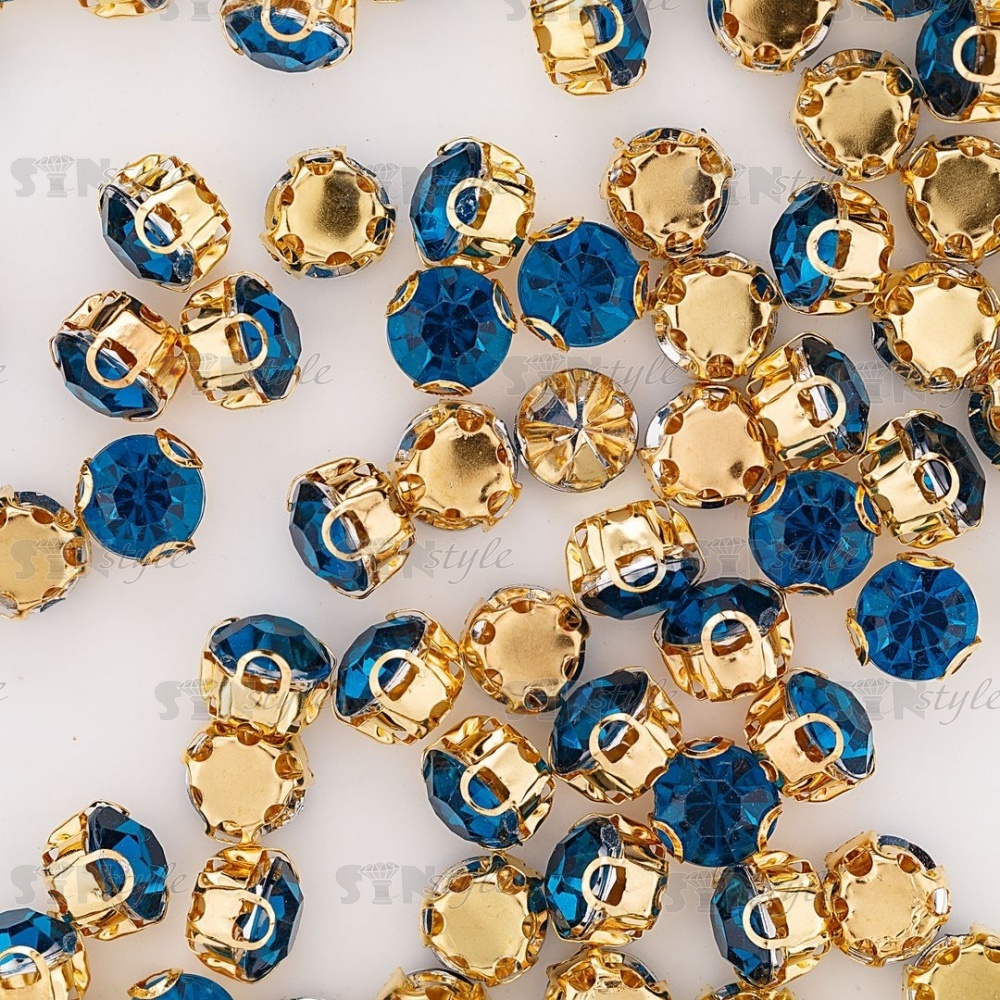 Стразы пришивные акриловые в цапах, форма круг, цвет золото+бирюза, диаметр 7 мм, 720 шт/уп.