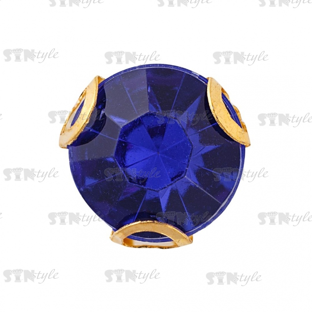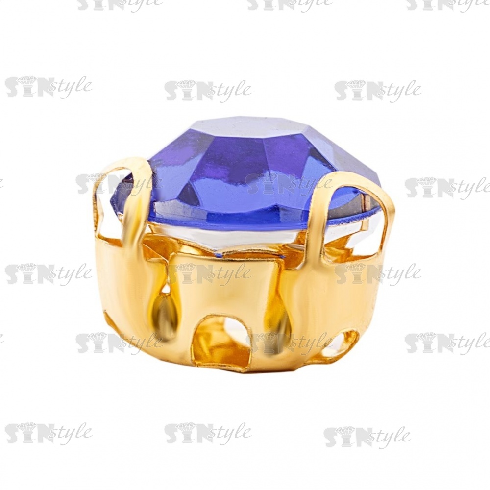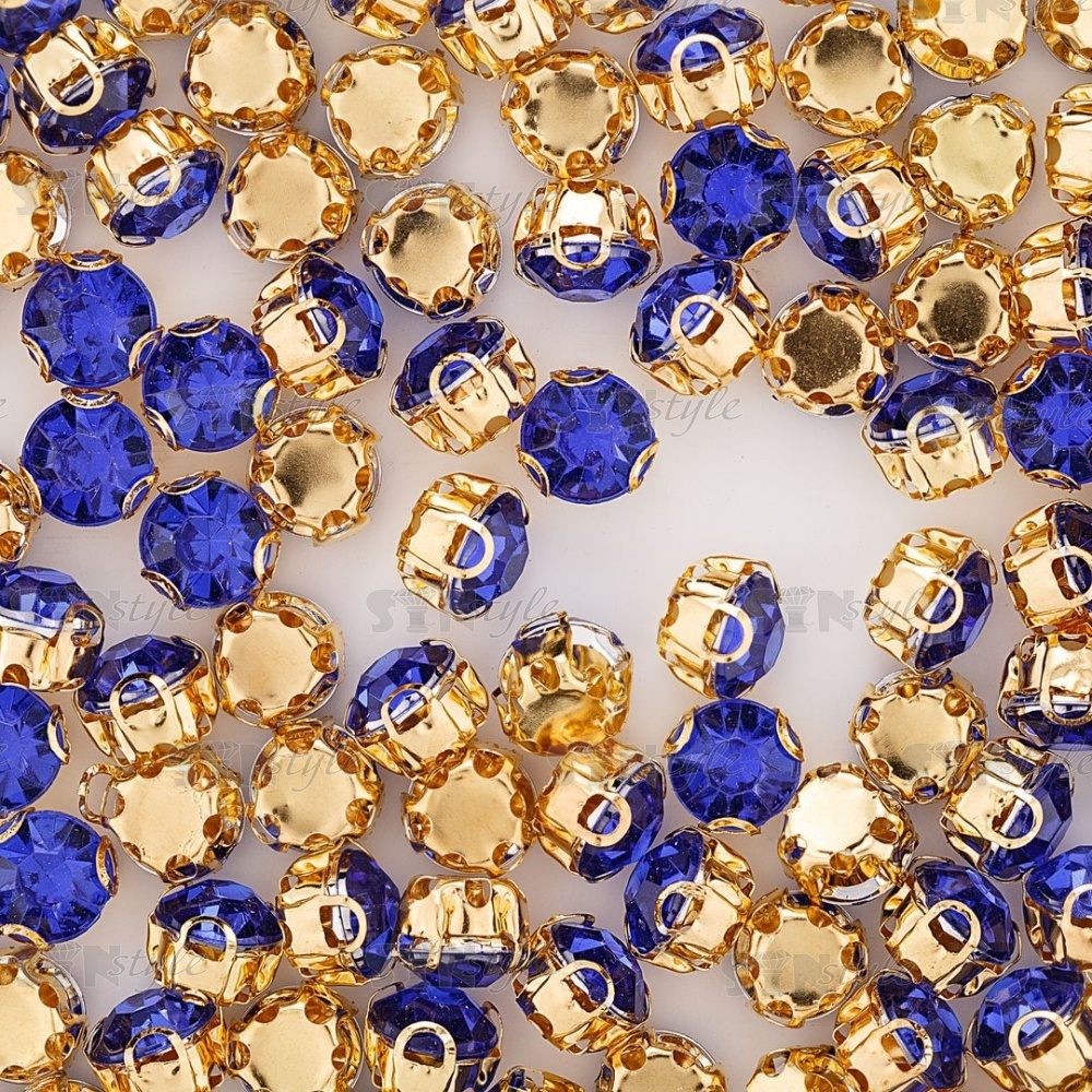 Стразы пришивные акриловые в цапах, форма круг, цвет золото+темно-голубой, диаметр 7 мм, 720 шт/уп.