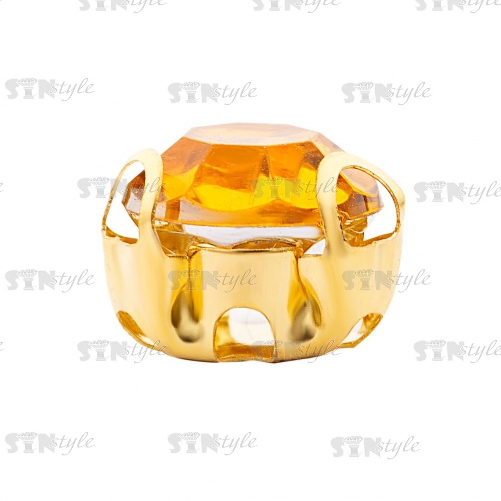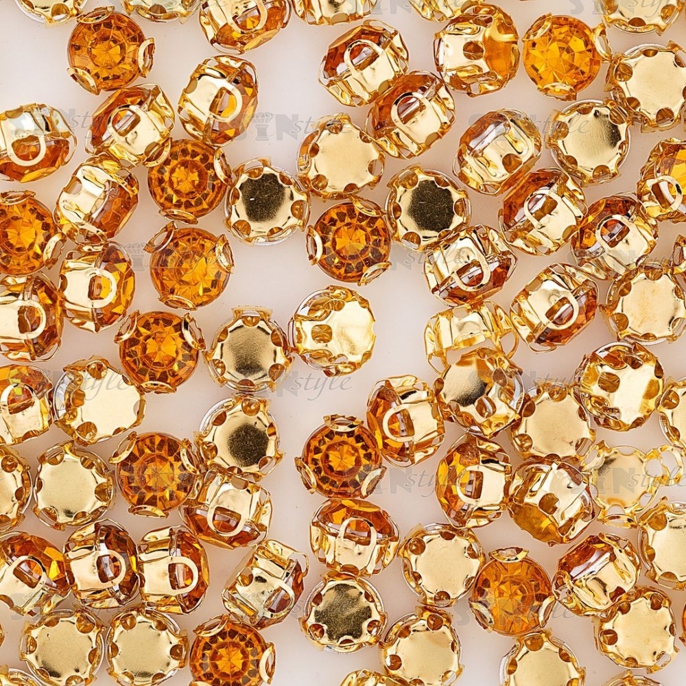 Стразы пришивные акриловые в цапах, форма круг, цвет золото+медовый, диаметр 7 мм, 720 шт/уп.