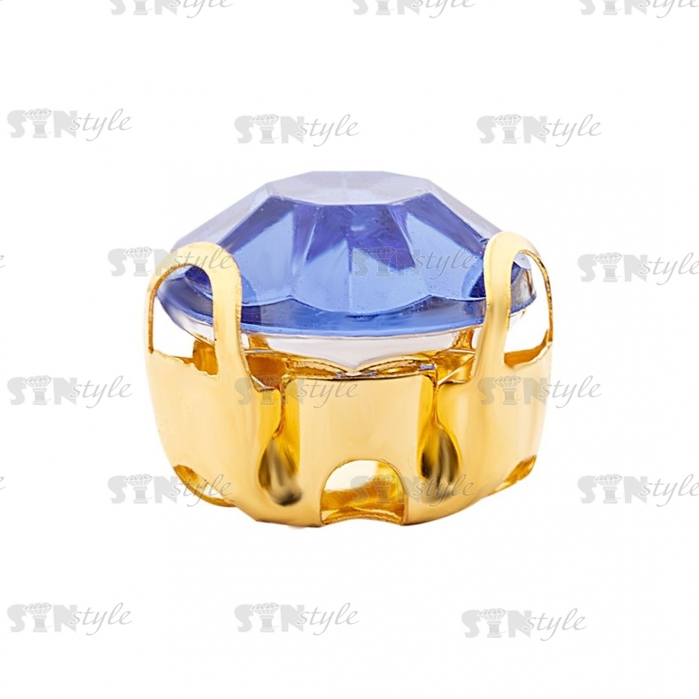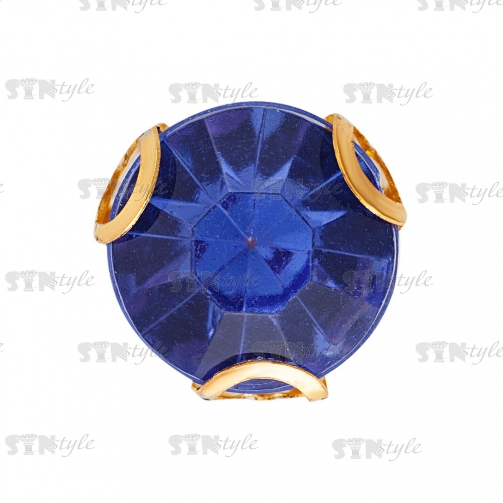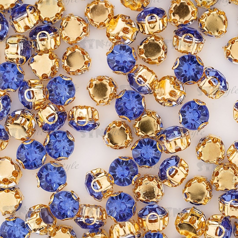 Стразы пришивные акриловые в цапах, форма круг, цвет золото+темно-голубой, диаметр 7 мм, 720 шт/уп.