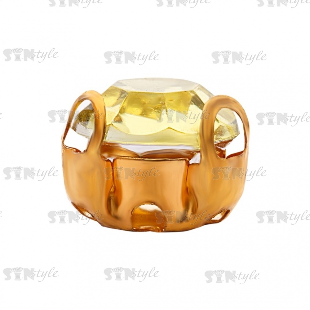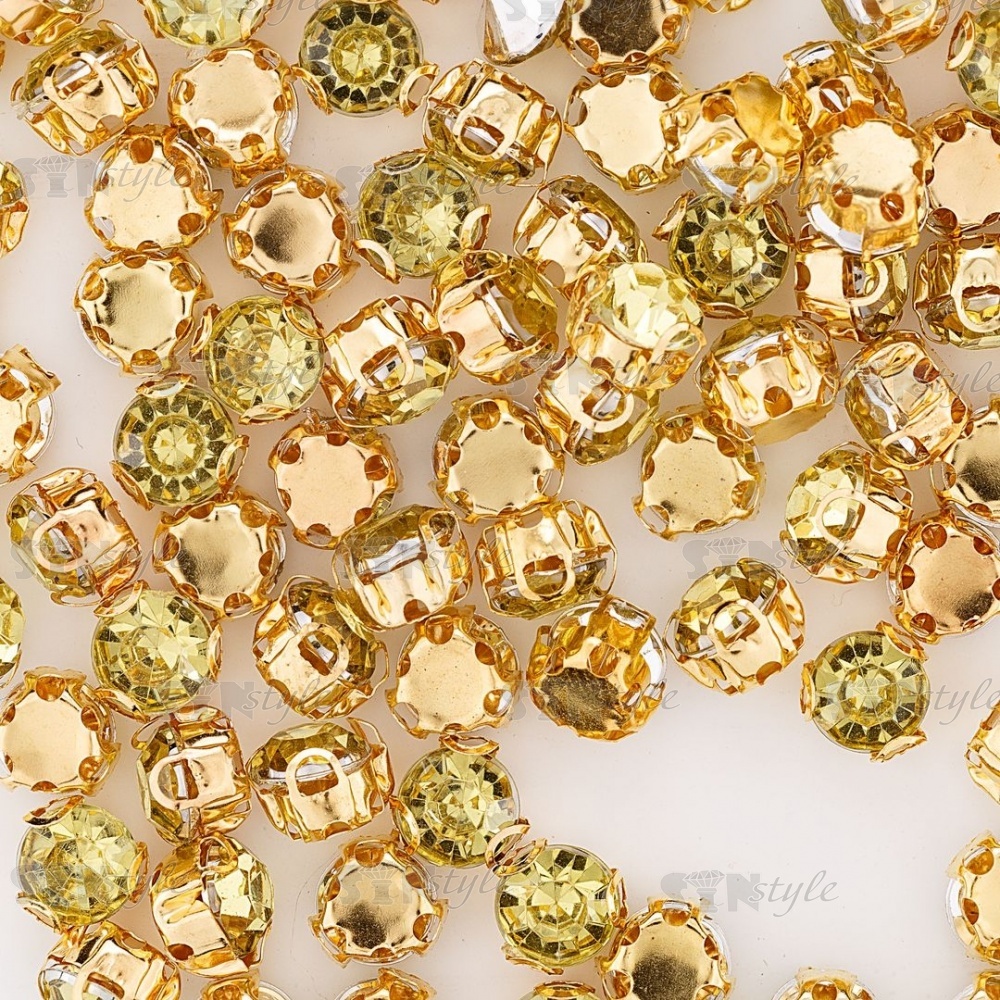Стразы пришивные акриловые в цапах, форма круг, цвет золото+желто-зеленый, диаметр 7 мм, 720 шт/уп.