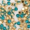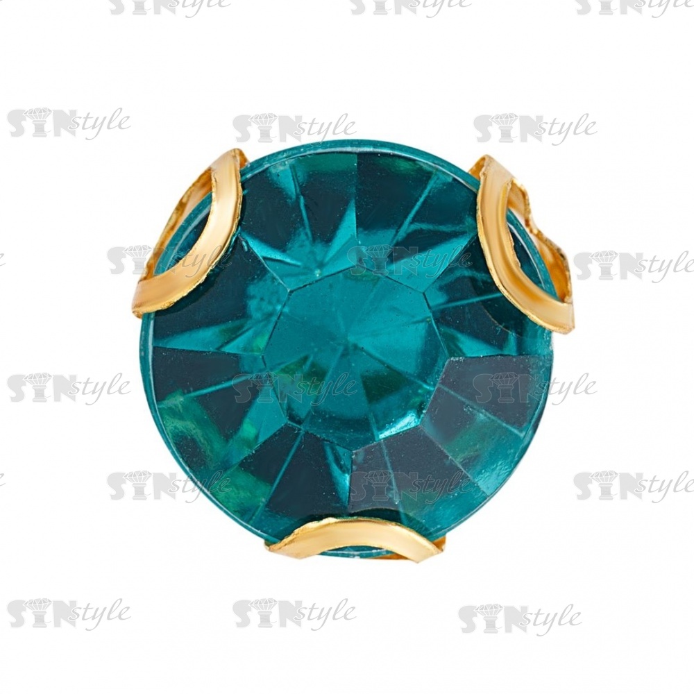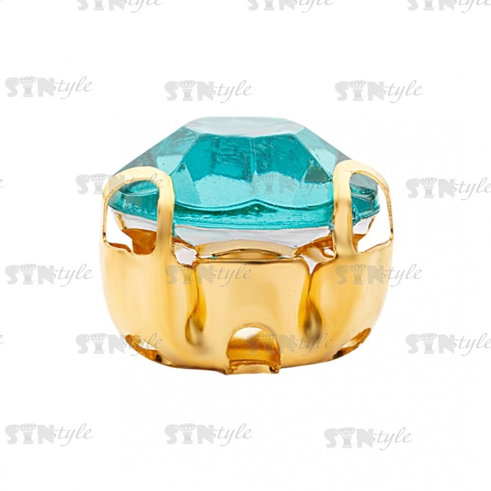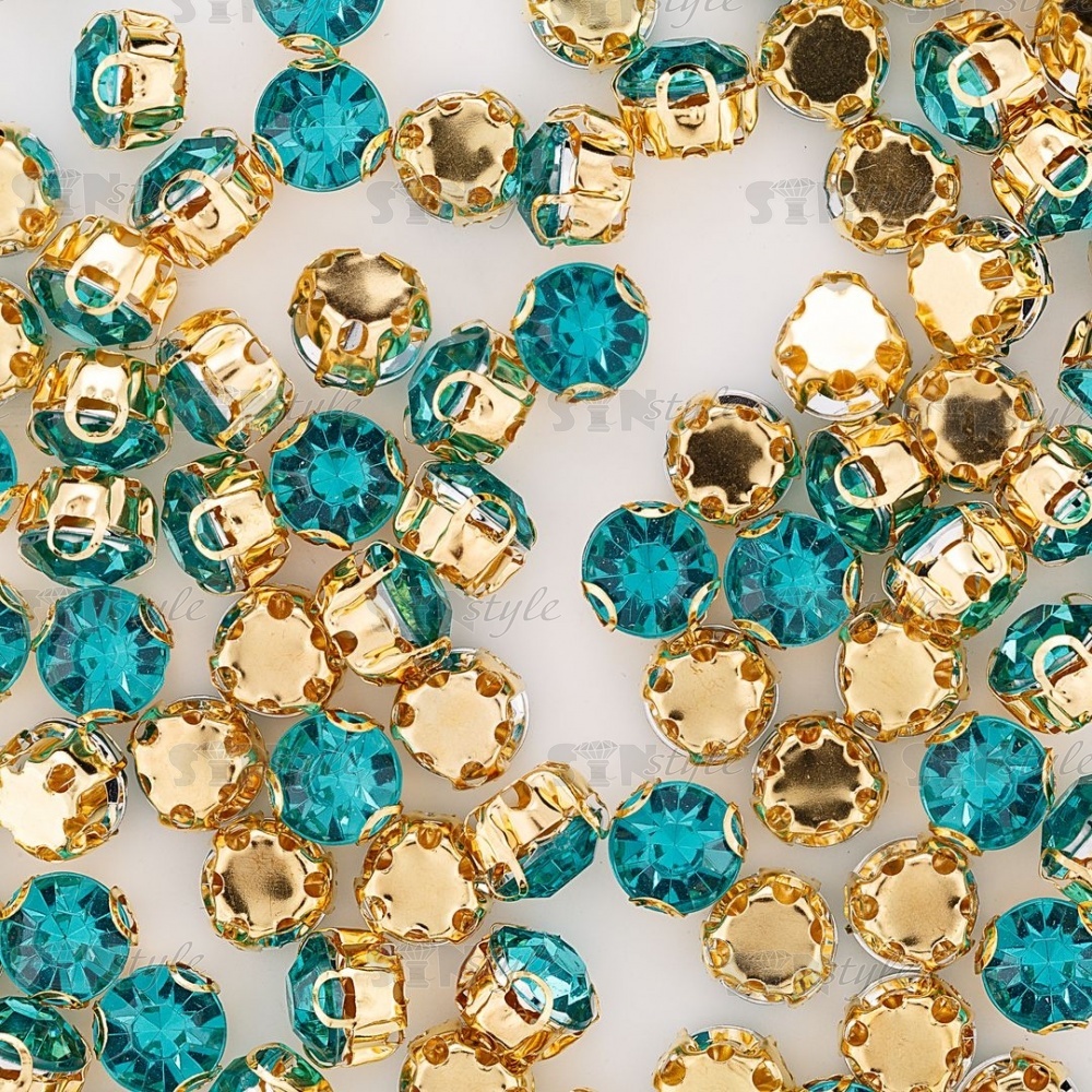 Стразы пришивные акриловые в цапах, форма круг, цвет золото+светло-бирюзовый, диаметр 7 мм, 720 шт/уп.