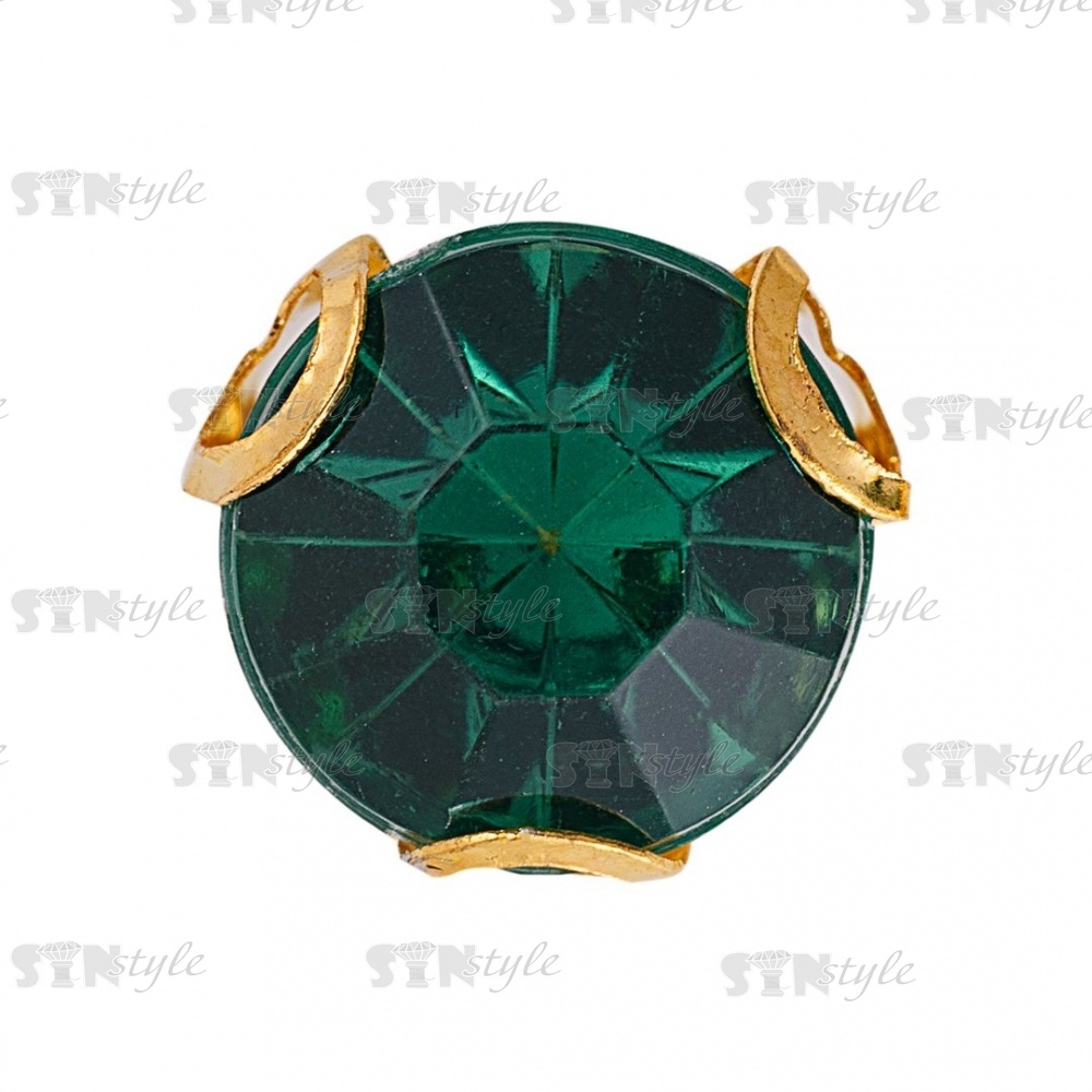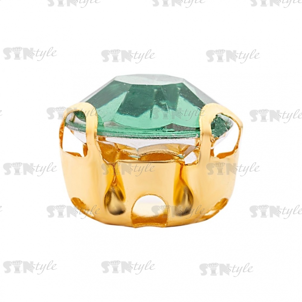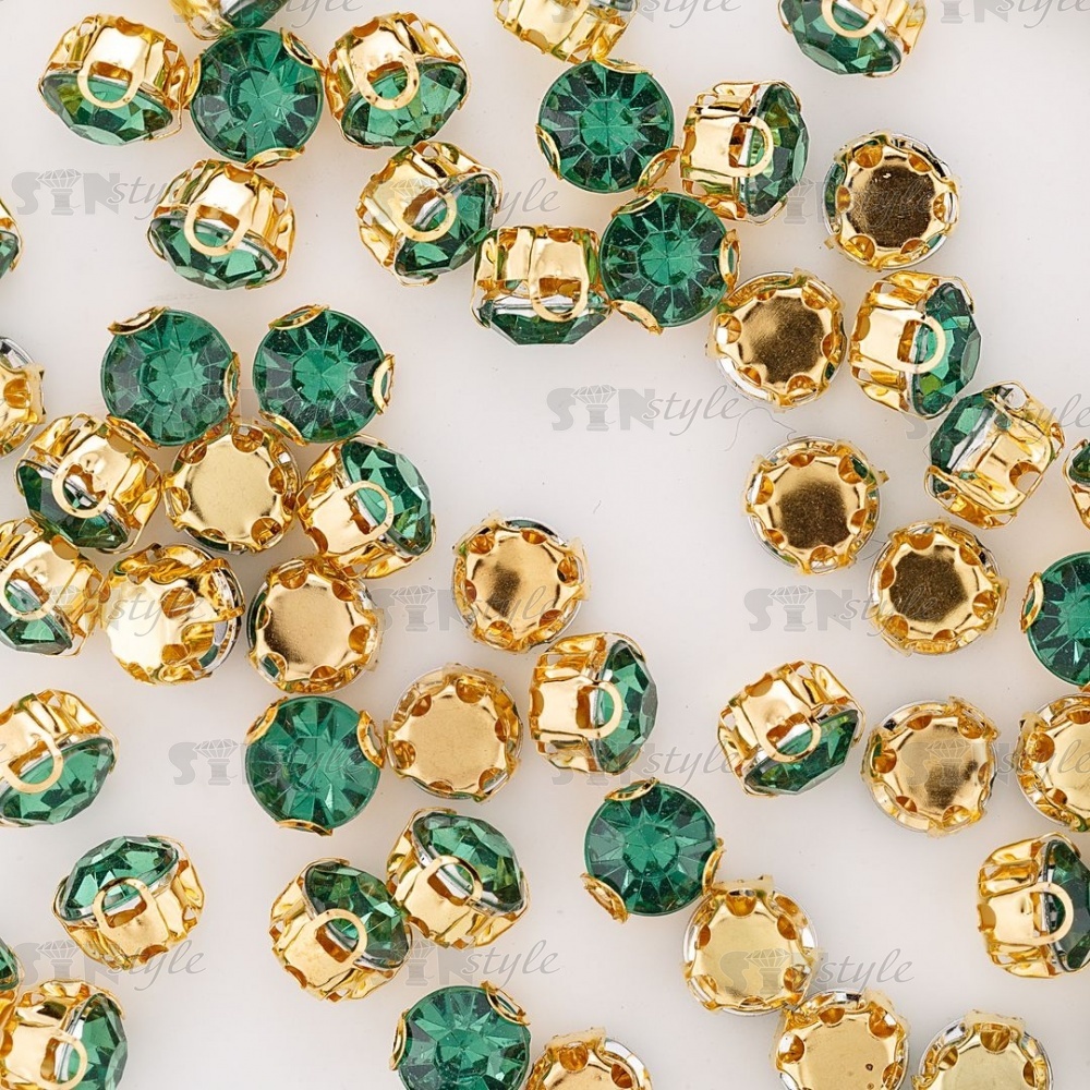 Стразы пришивные акриловые в цапах, форма круг, цвет золото+зеленый, диаметр 7 мм, 720 шт/уп.