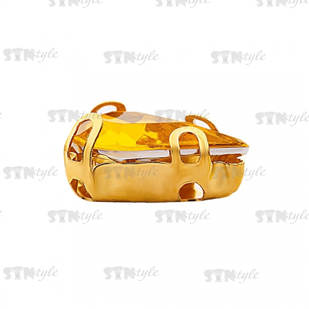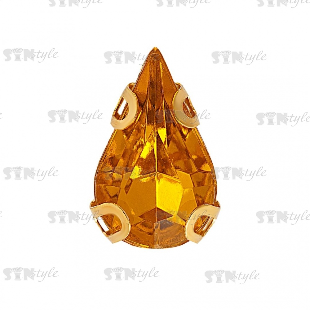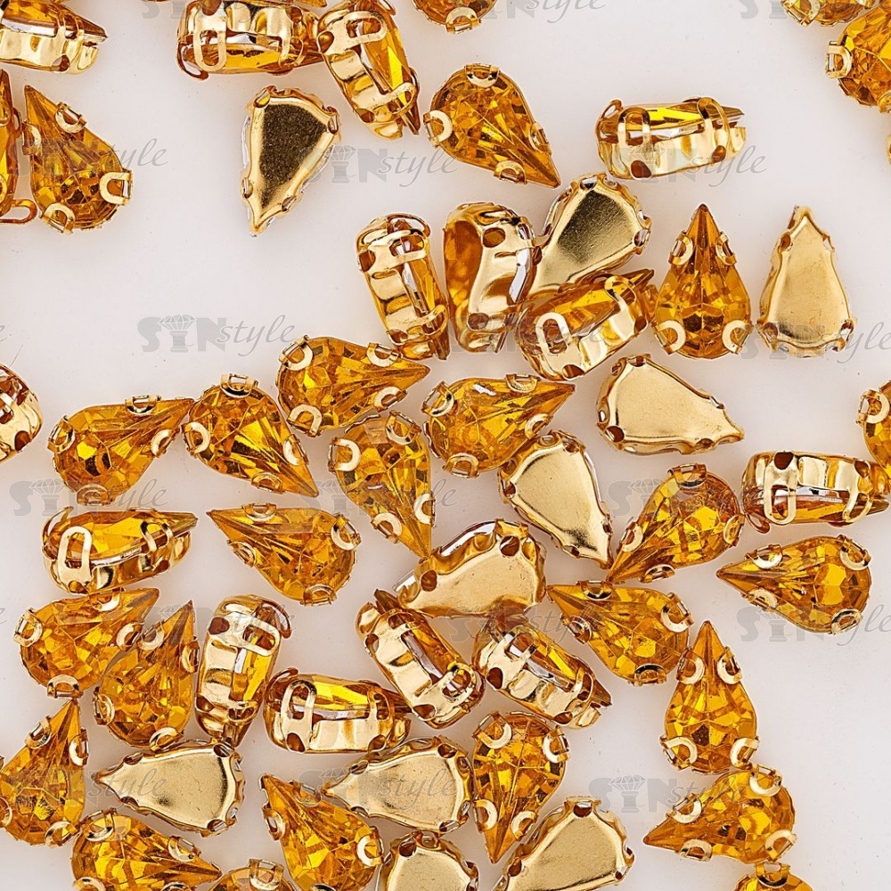 Стразы пришивные акриловые в цапах, форма капля, цвет золото+желтый, размер 6х10мм, 200 шт/уп.