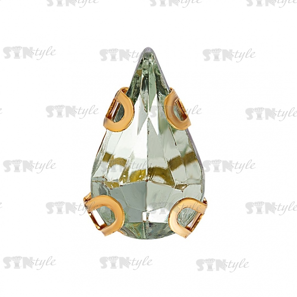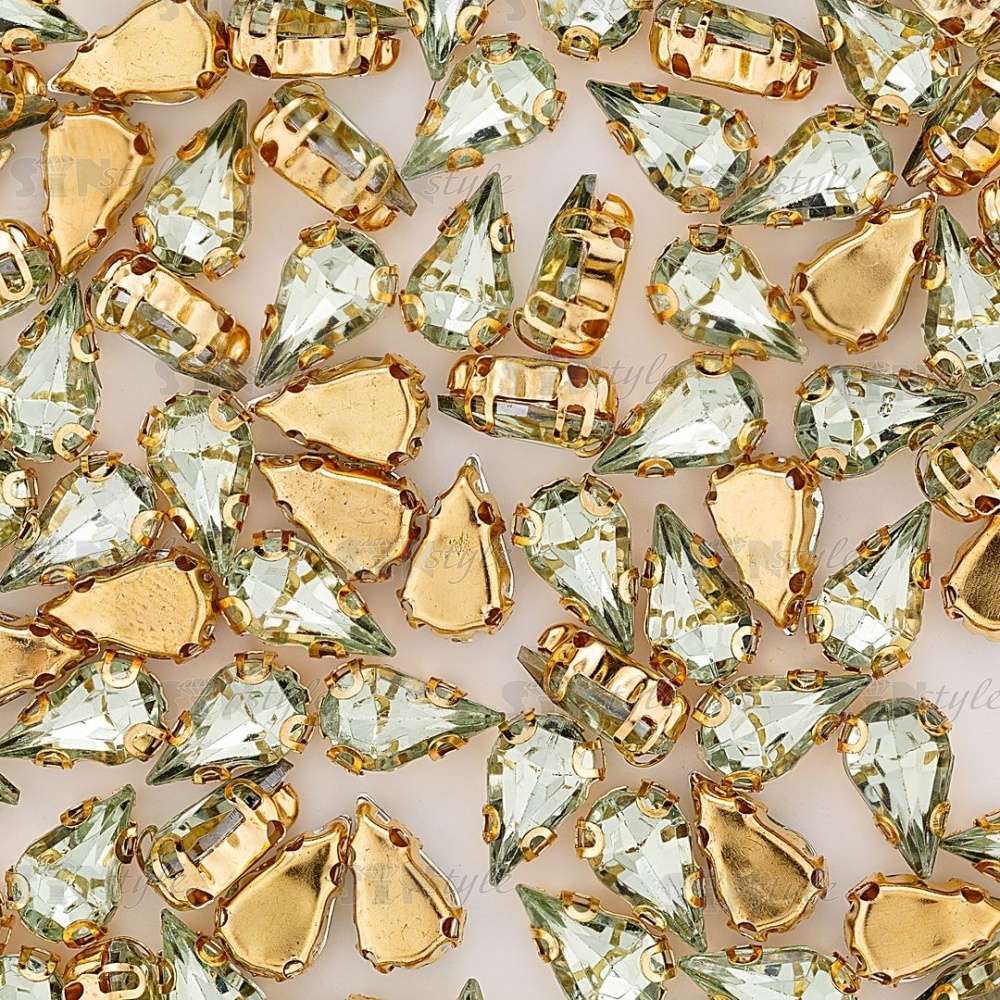 Стразы пришивные акриловые в цапах, форма капля, цвет золото+мятный, размер 6х10мм, 200 шт/уп.