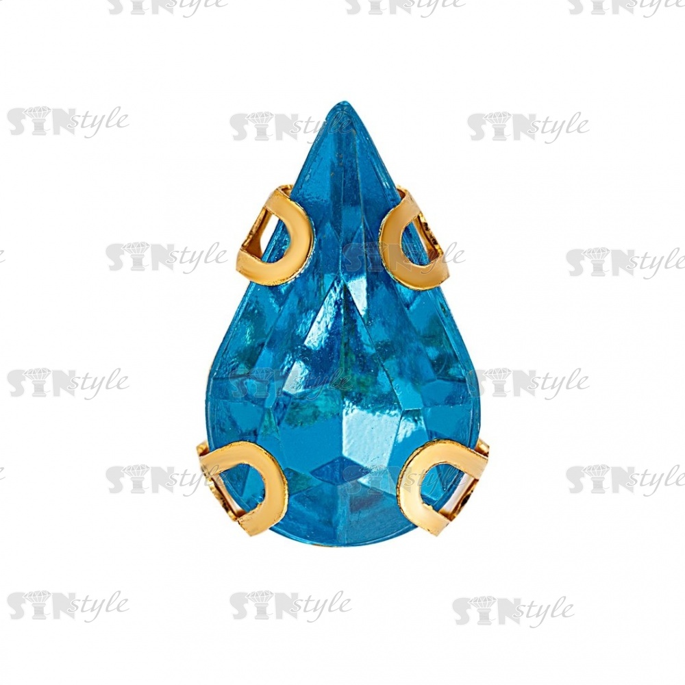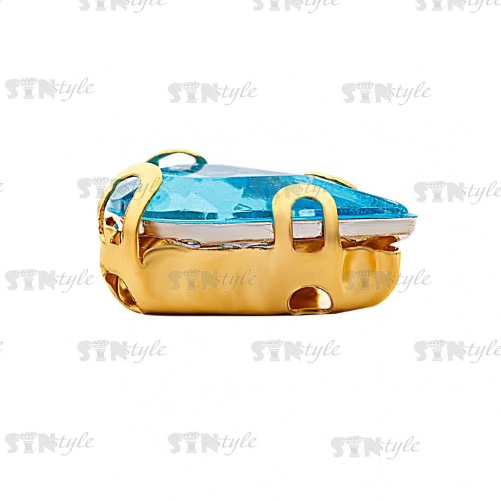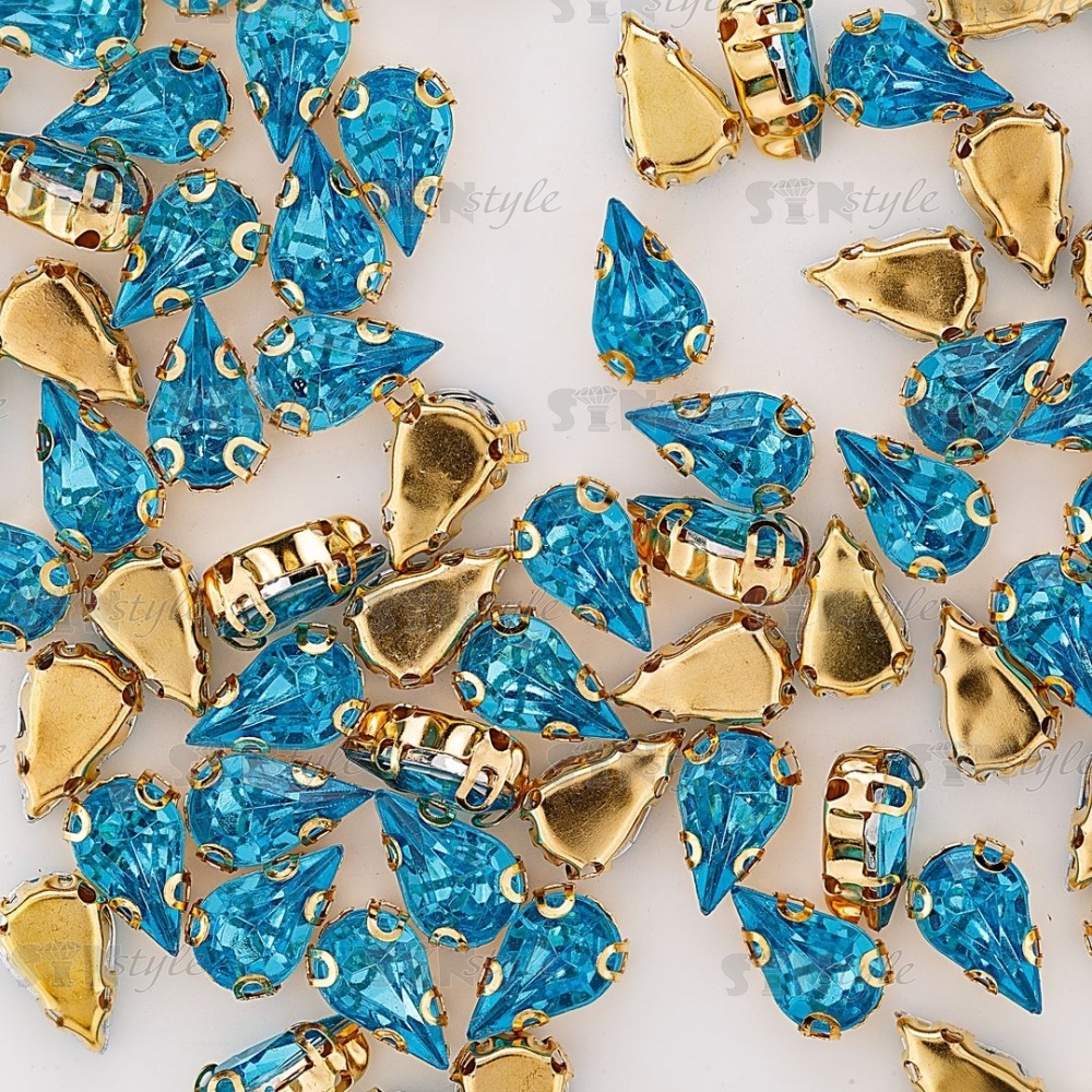 Стразы пришивные акриловые в цапах, форма капля, цвет золото+голубой, размер 6х10мм, 200 шт/уп.