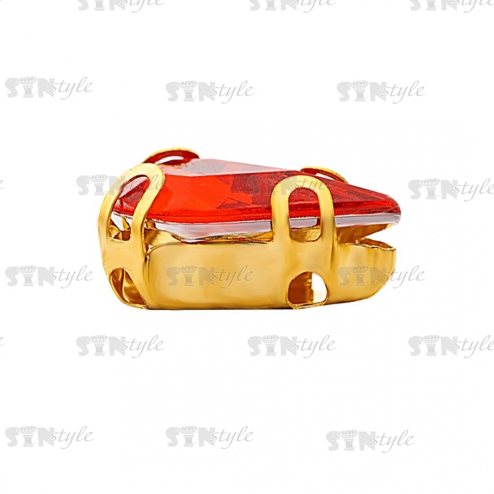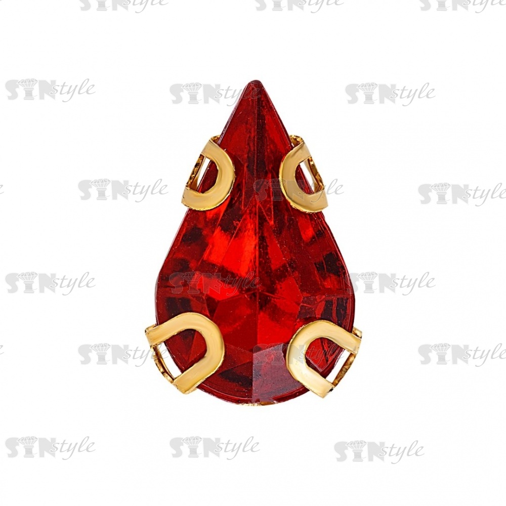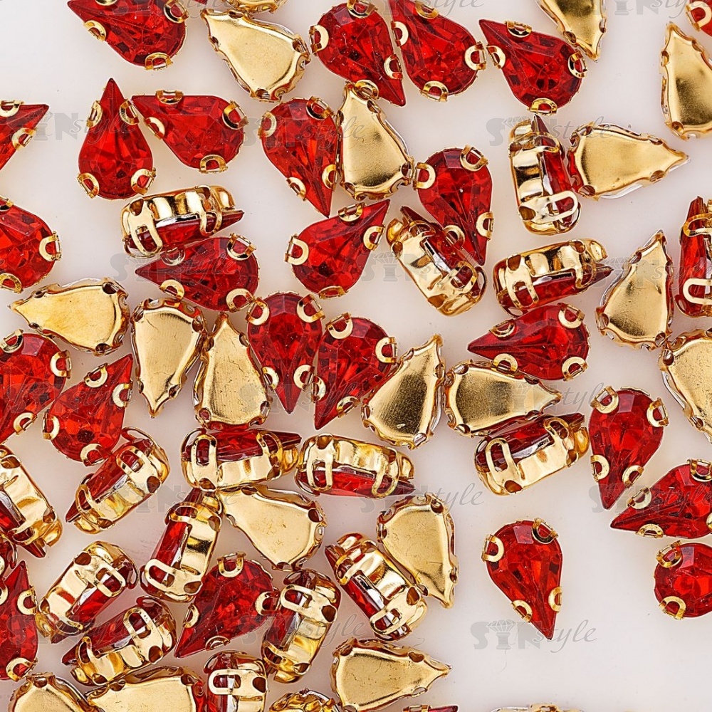 Стразы пришивные акриловые в цапах, форма капля, цвет золото+красный, размер 6х10мм, 200 шт/уп