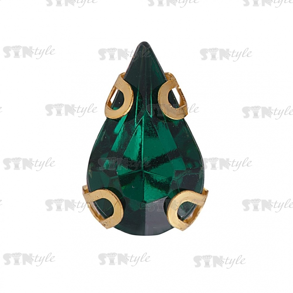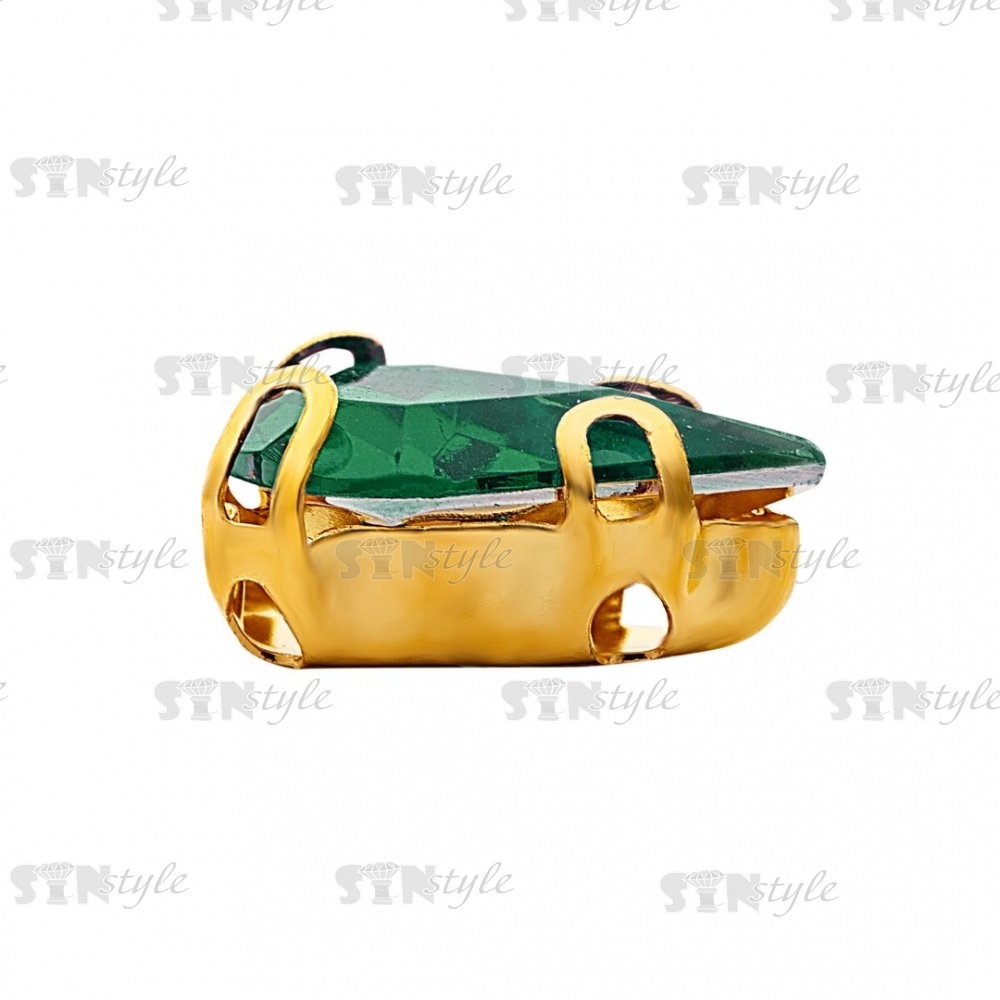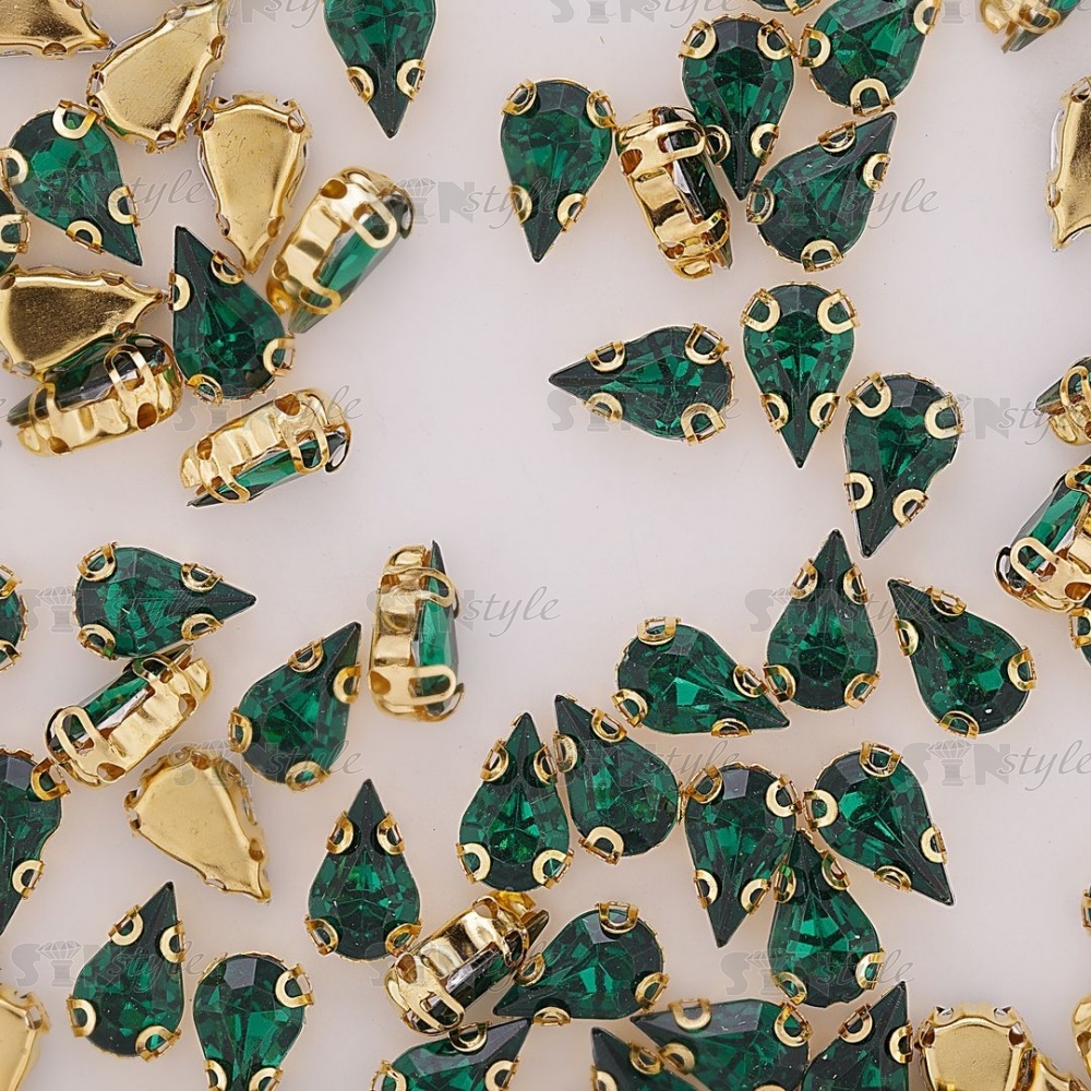 Стразы пришивные акриловые в цапах, форма капля, цвет золото+зеленый, размер 6х10мм, 200 шт/уп