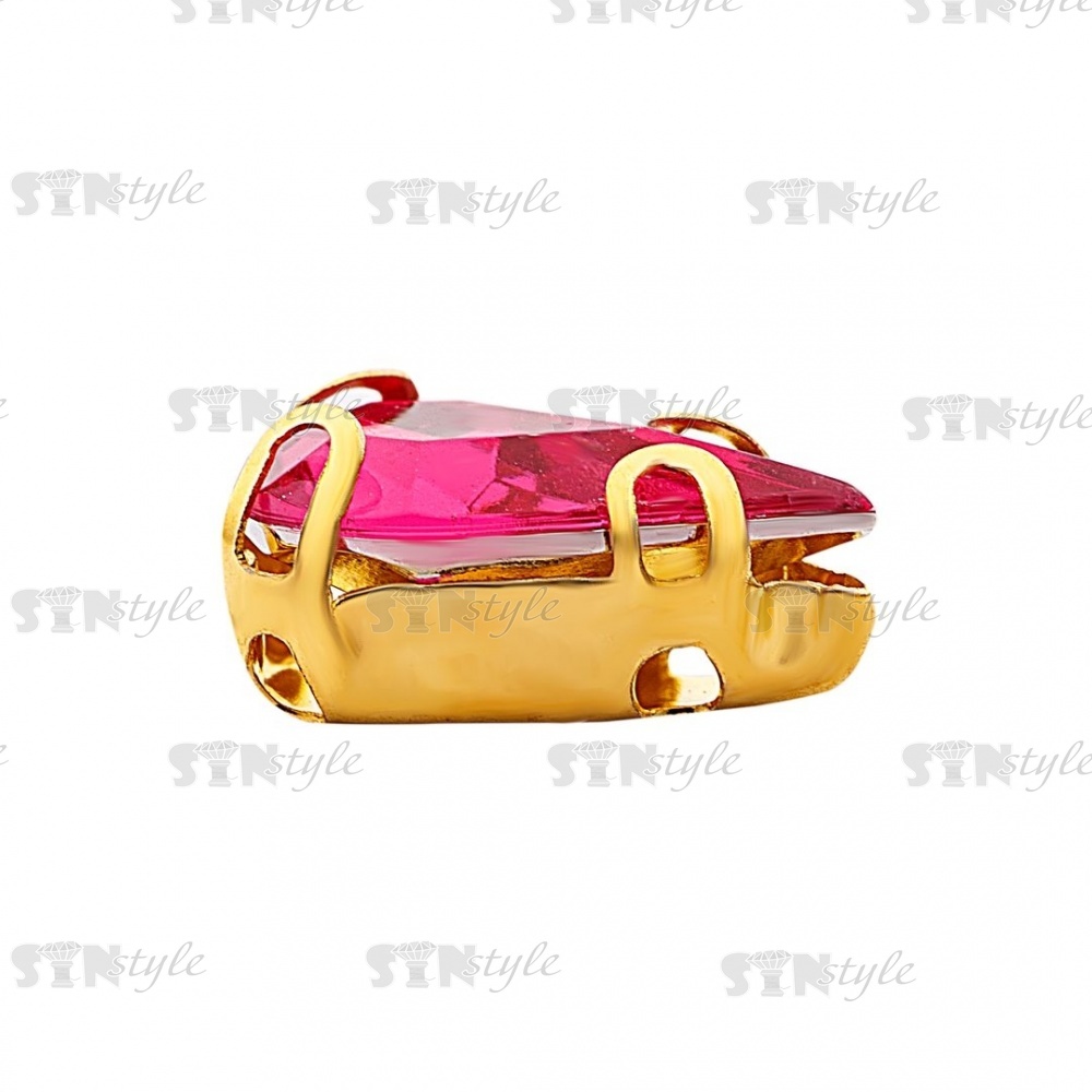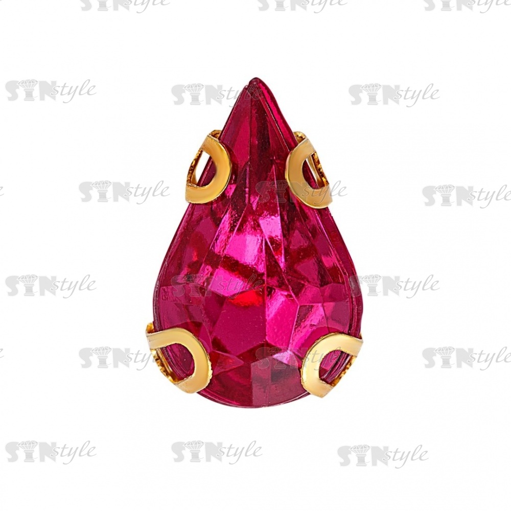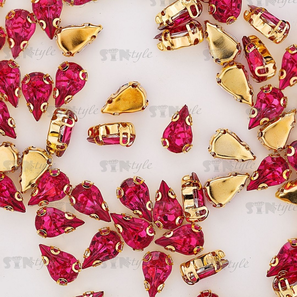 Стразы пришивные акриловые в цапах, форма капля, цвет золото+малиновый, размер 6х10мм, 200 шт/уп.
