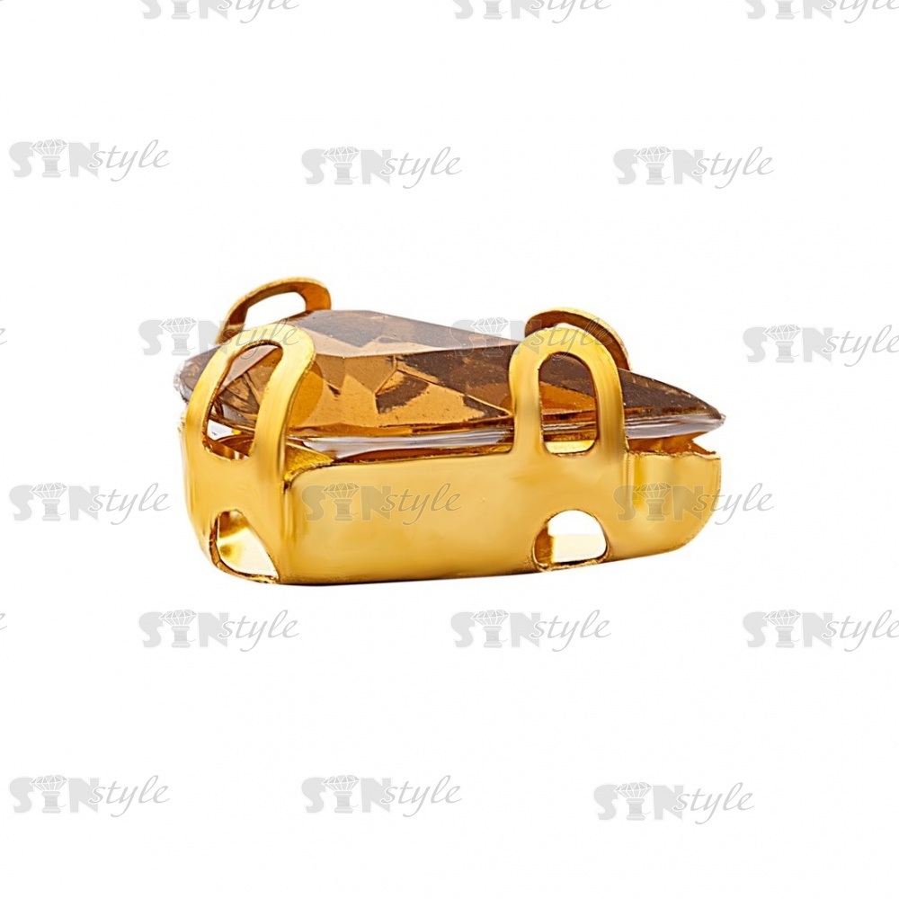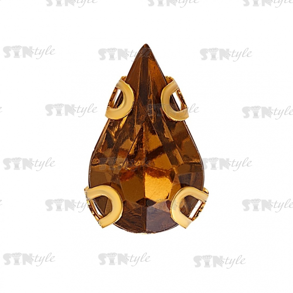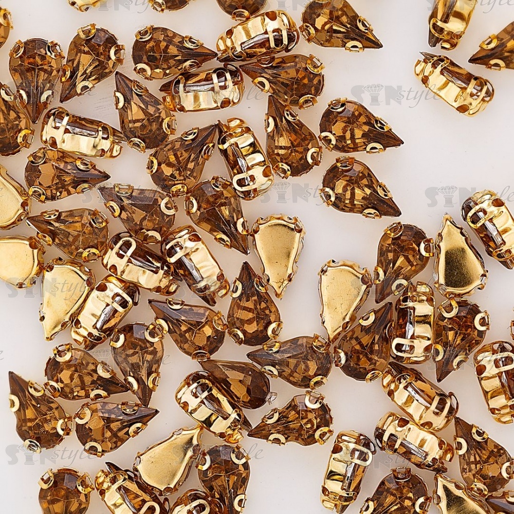 Стразы пришивные акриловые в цапах, форма капля, цвет золото+коричневый, размер 6х10мм, 200 шт/уп