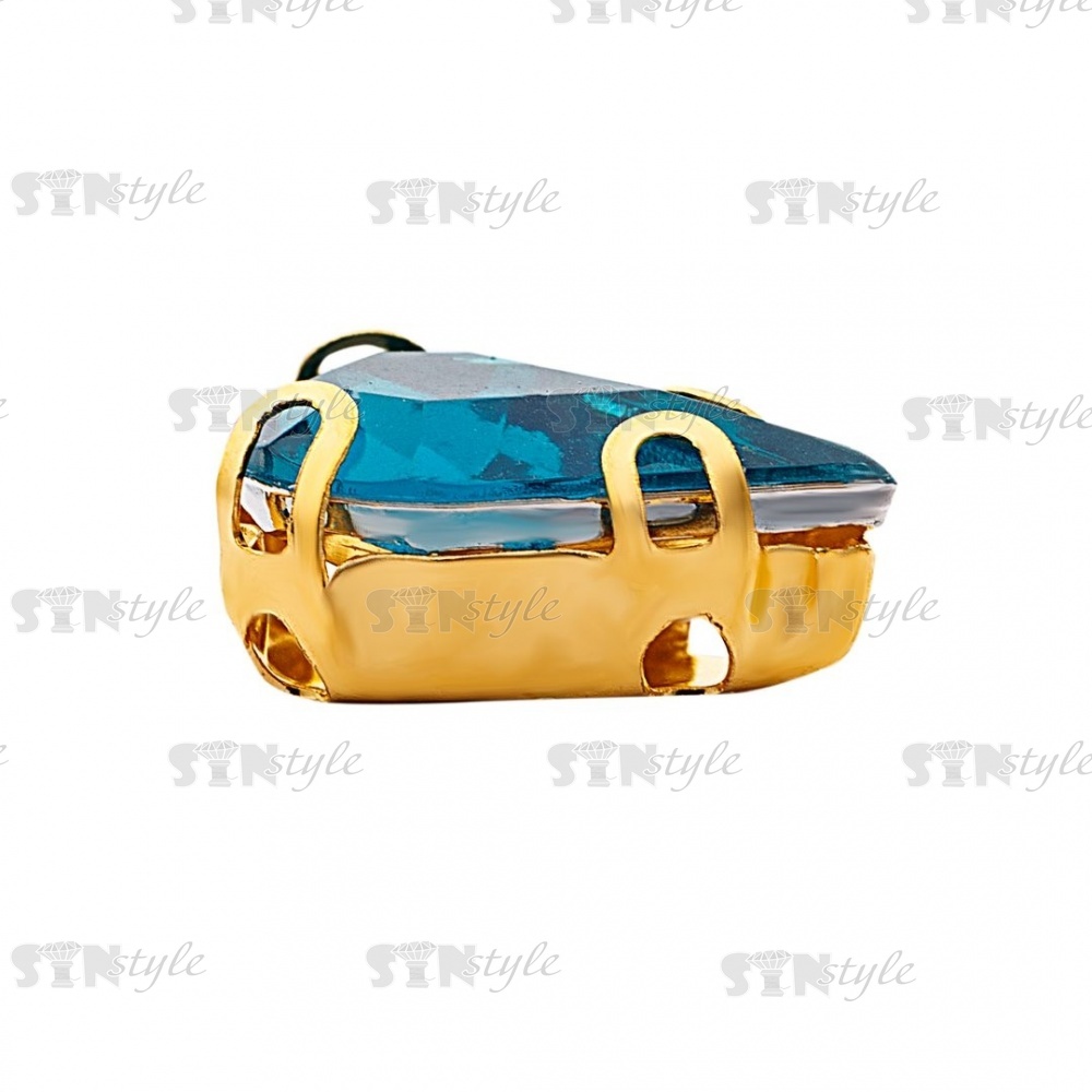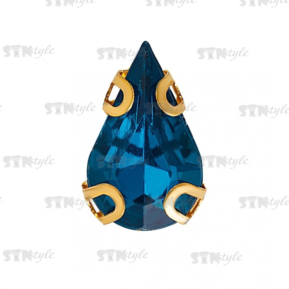 Стразы пришивные акриловые в цапах, форма капля, цвет золото+бирюза, размер 6х10мм, 200 шт/уп.