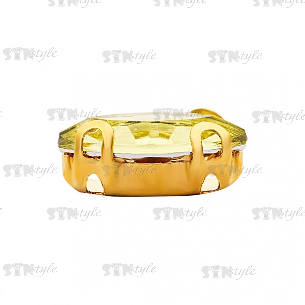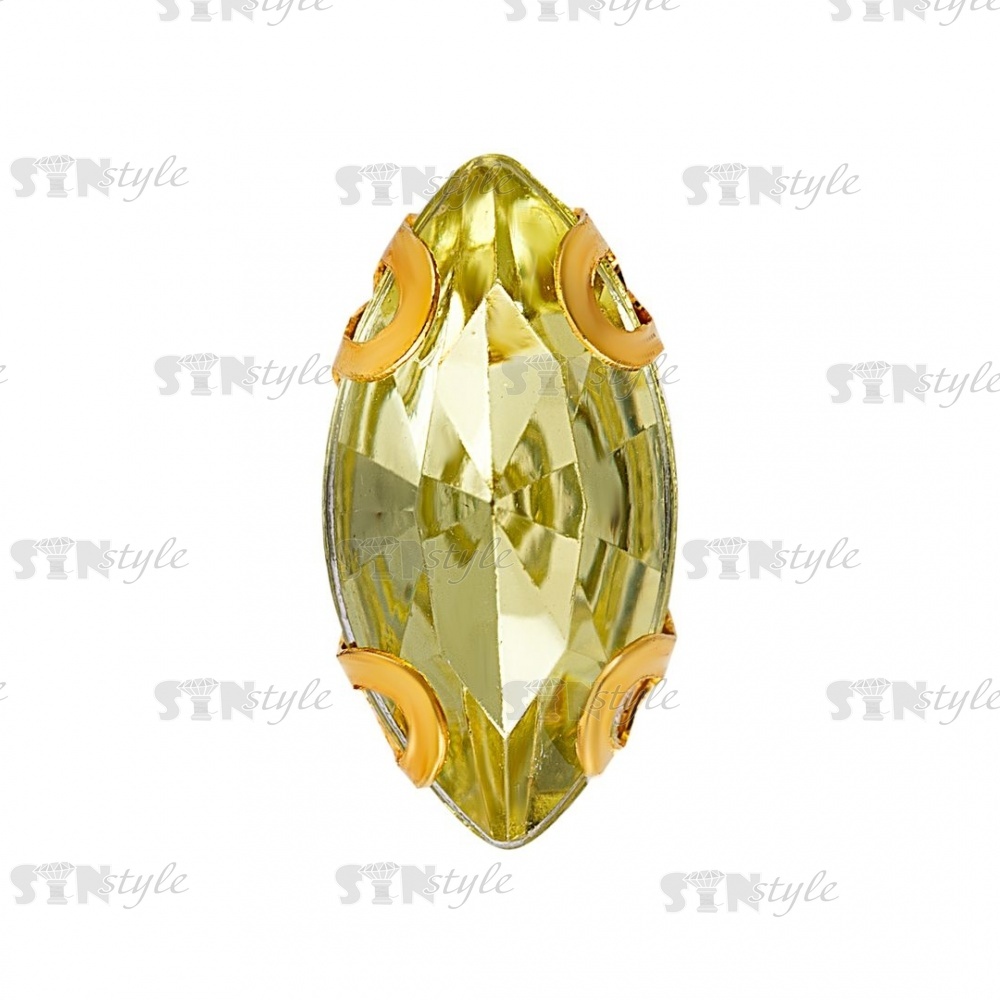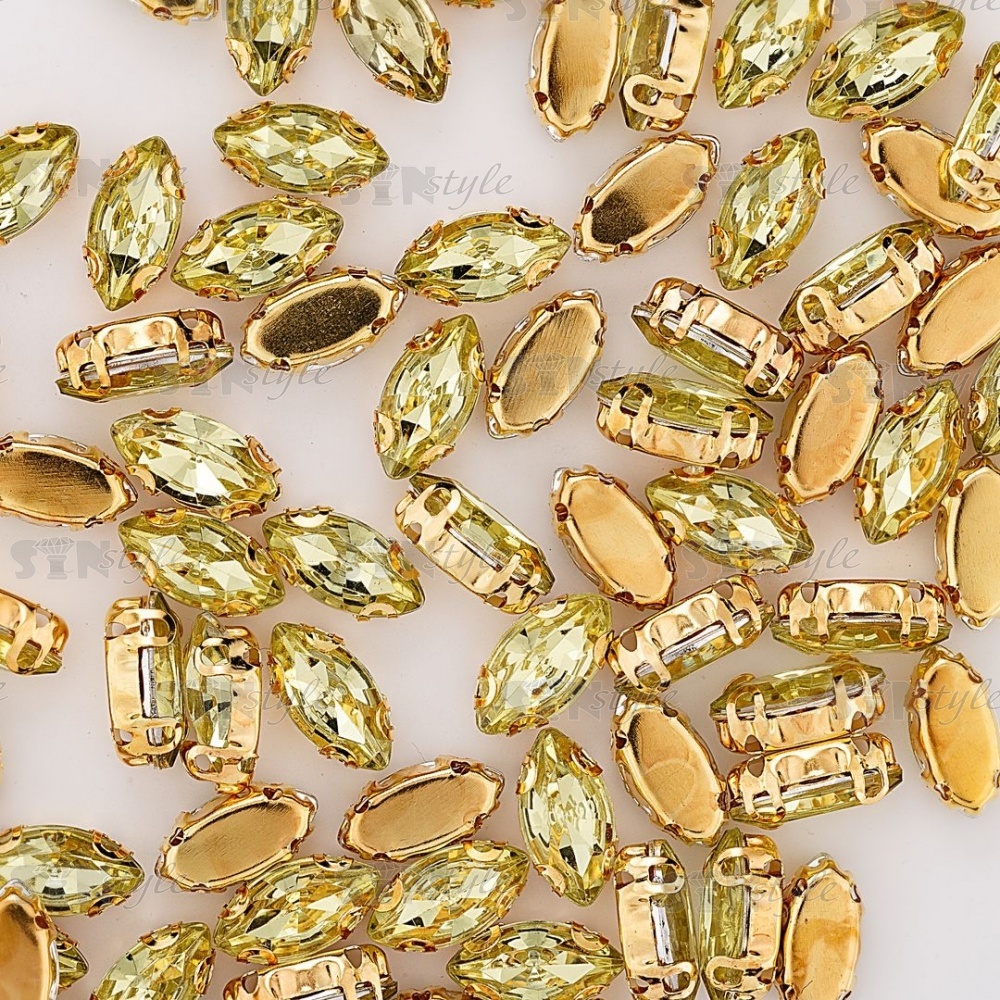 Стразы пришивные акриловые в цапах, форма лодочка, цвет золото+желто-зеленый, размер 5х10 мм, 200 шт/уп.
