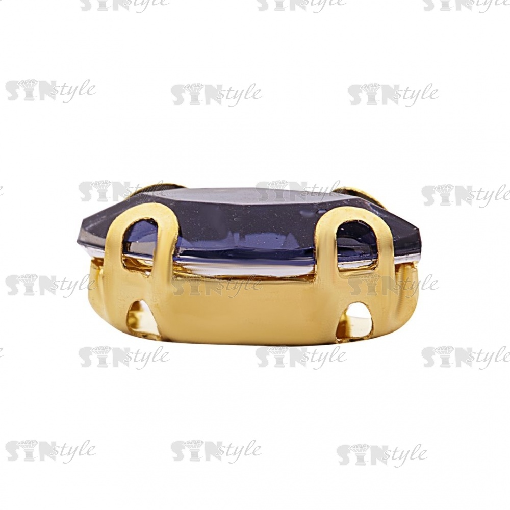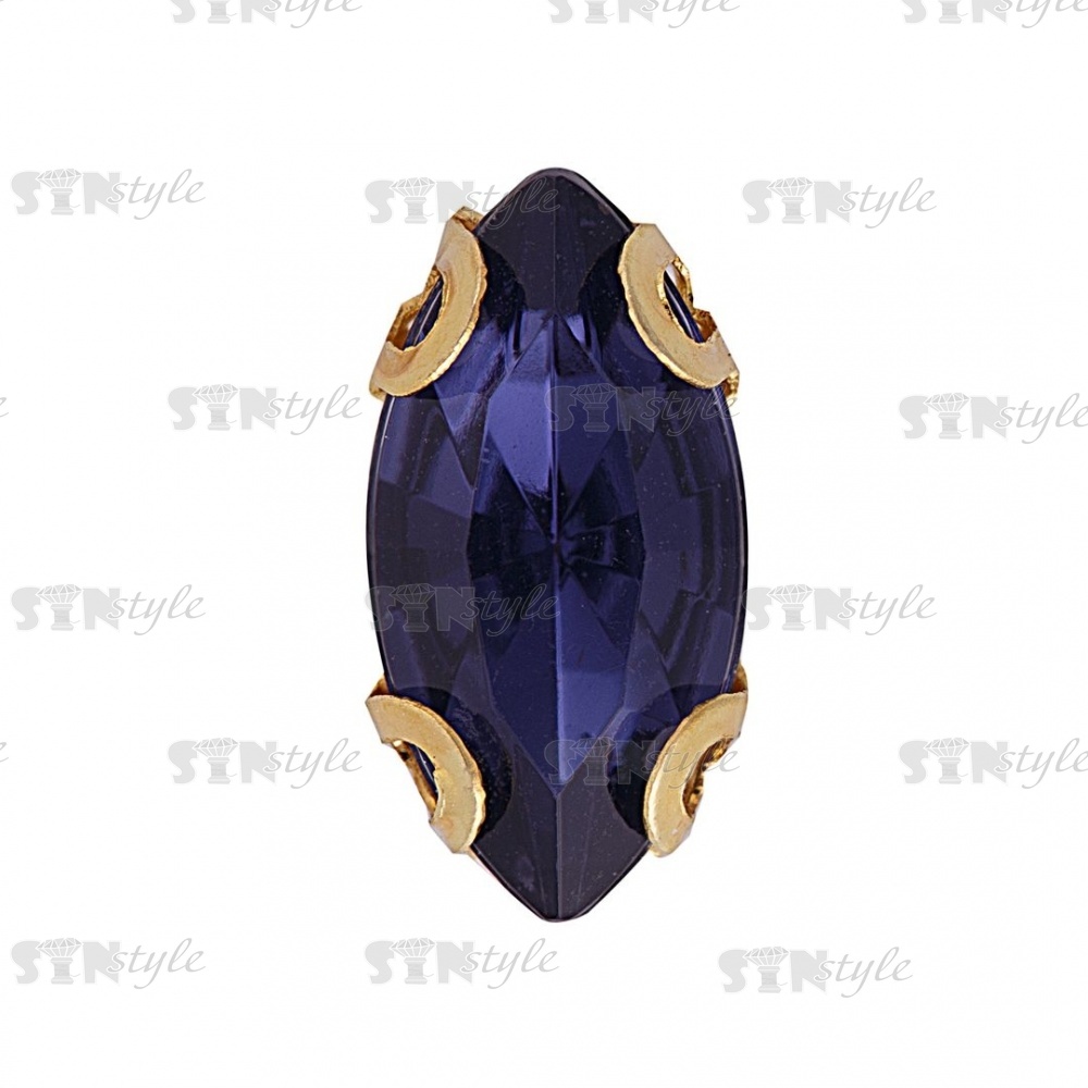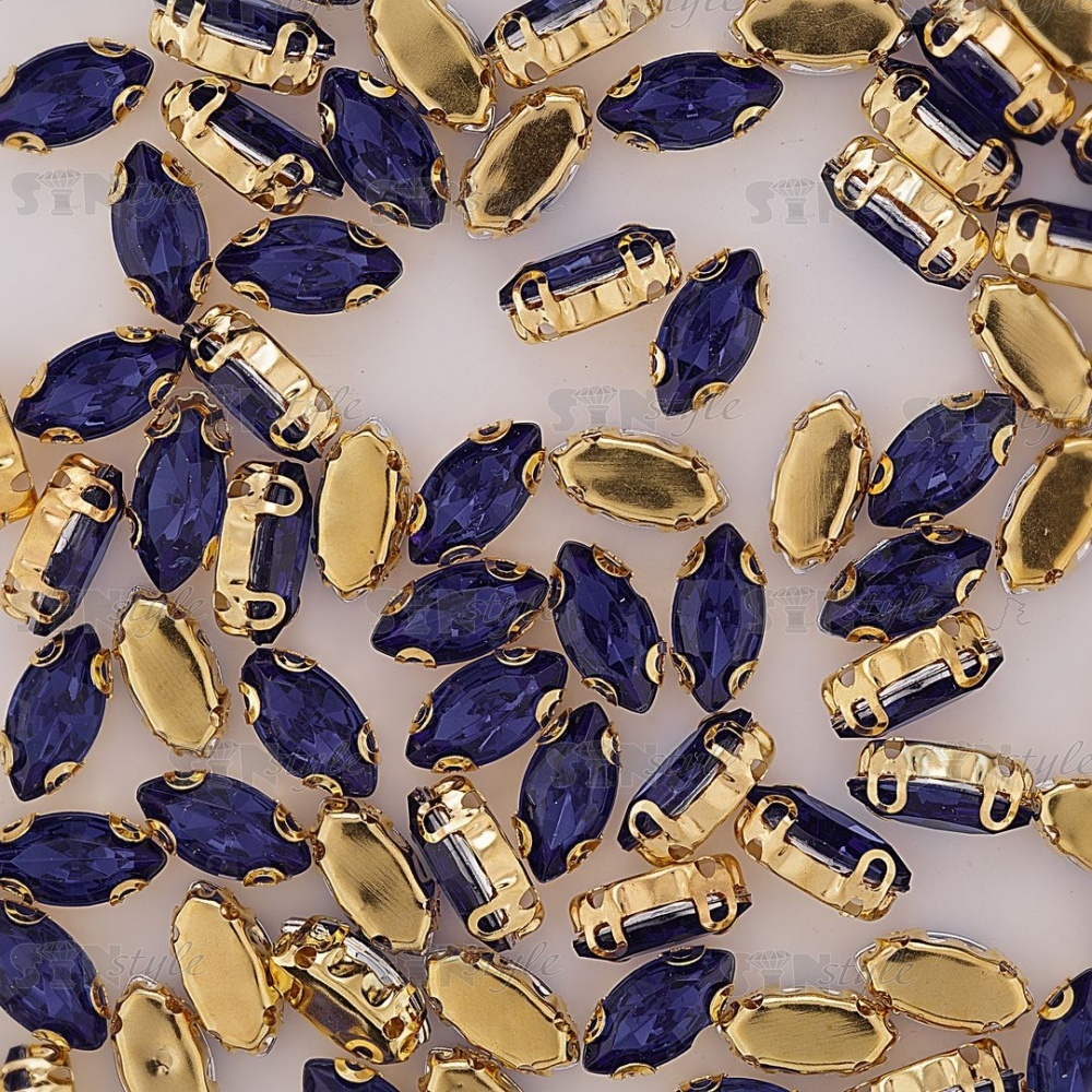 Стразы пришивные акриловые в цапах, форма лодочка, цвет золото+темно-синий, размер 5х10 мм, 200 шт/уп