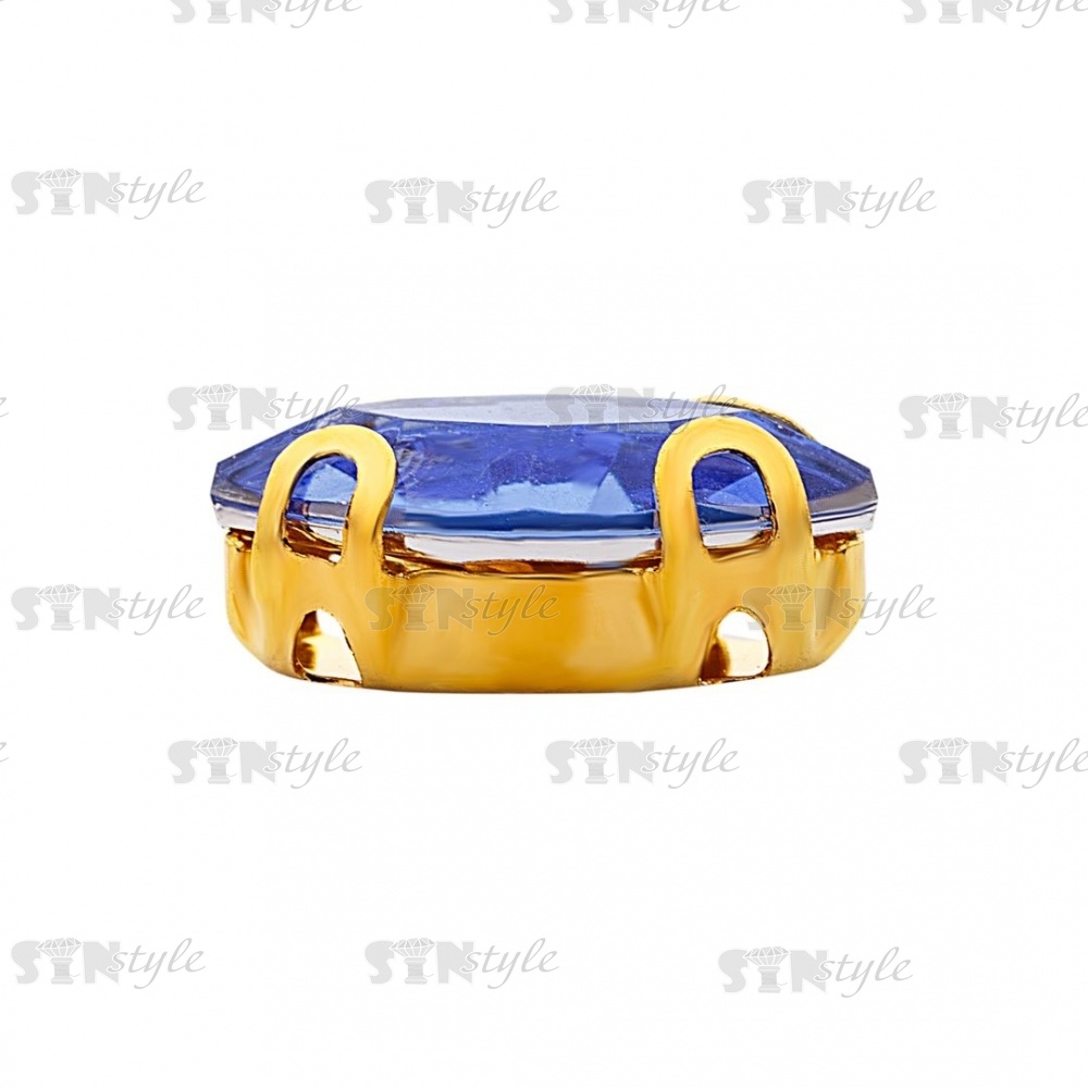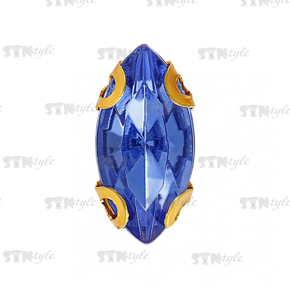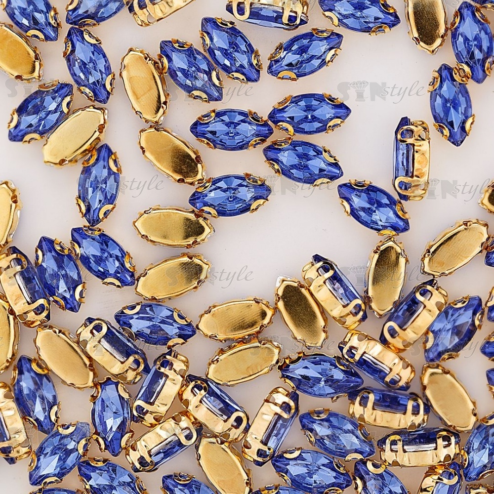 Стразы пришивные акриловые в цапах, форма лодочка, цвет золото+светло-синий, размер 5х10 мм, 200 шт/уп