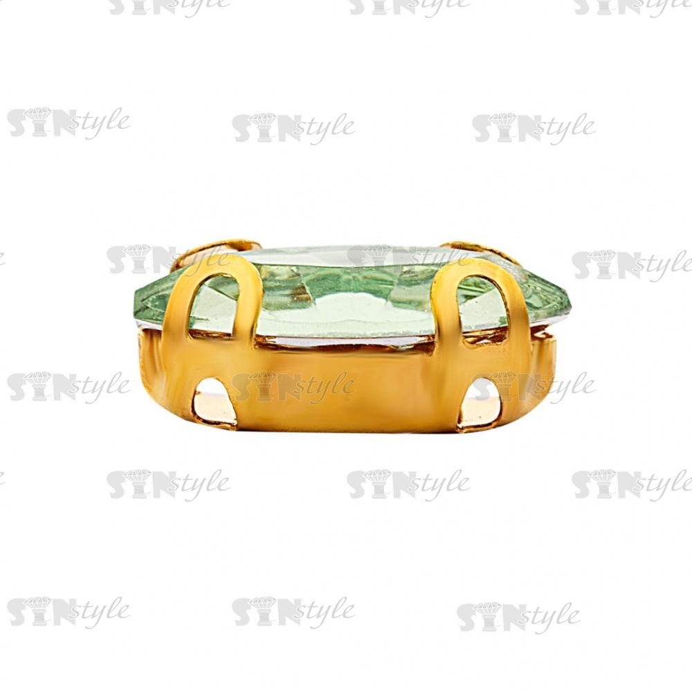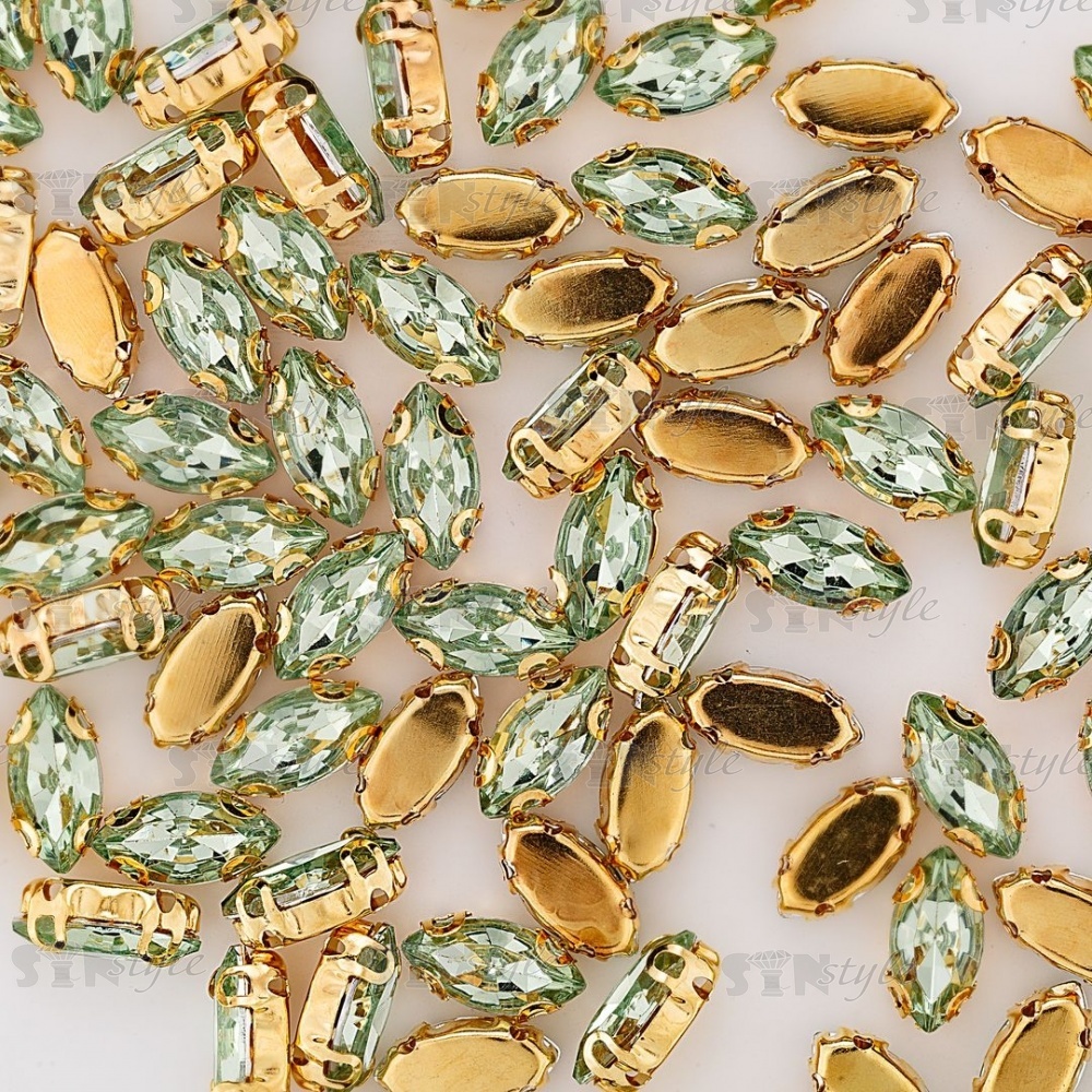 Стразы пришивные акриловые в цапах, форма лодочка, цвет золото+светло-зеленый, размер 5х10 мм, 200 шт/уп.