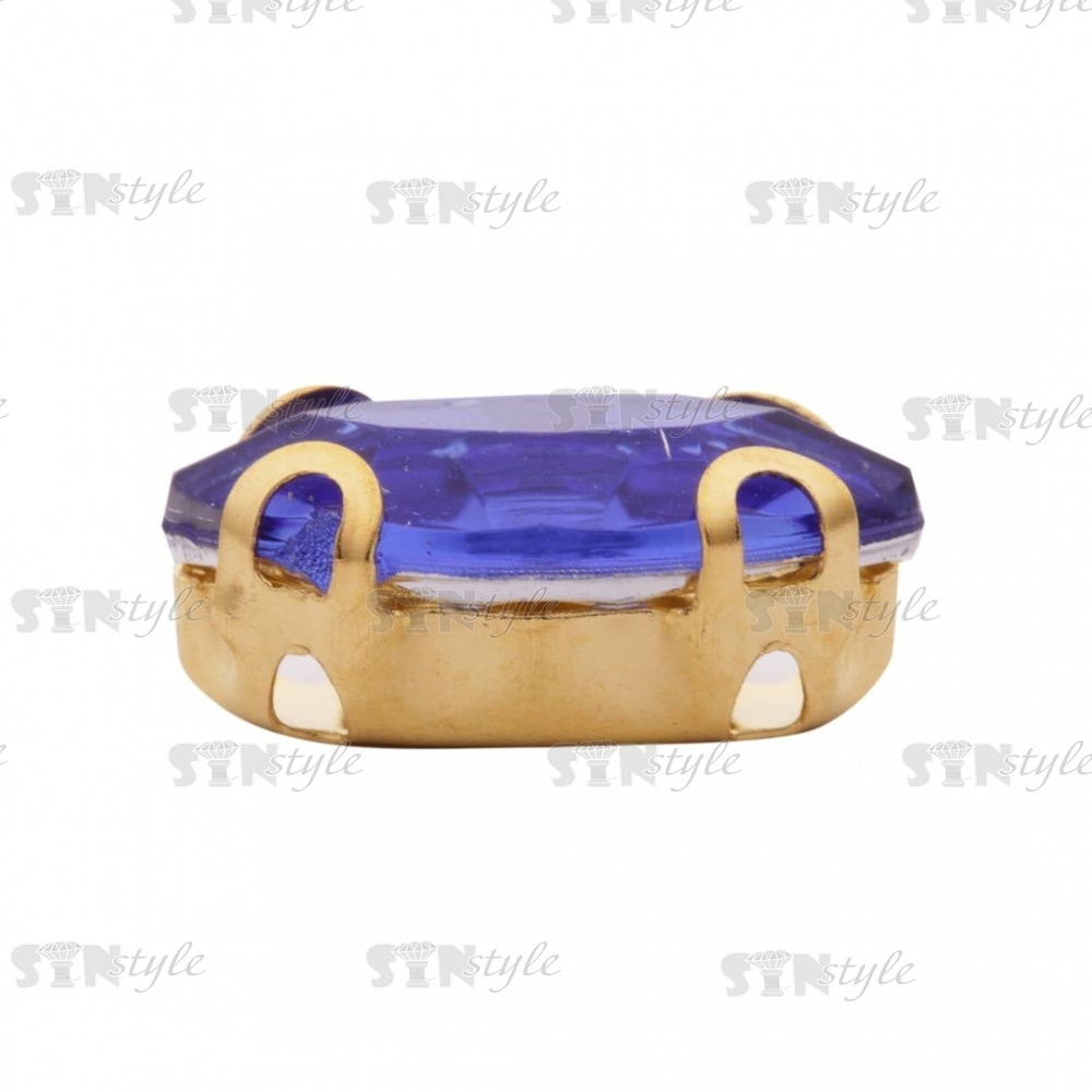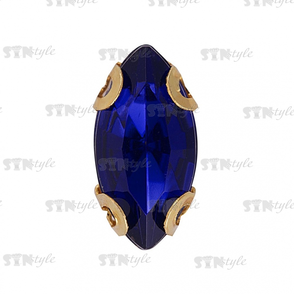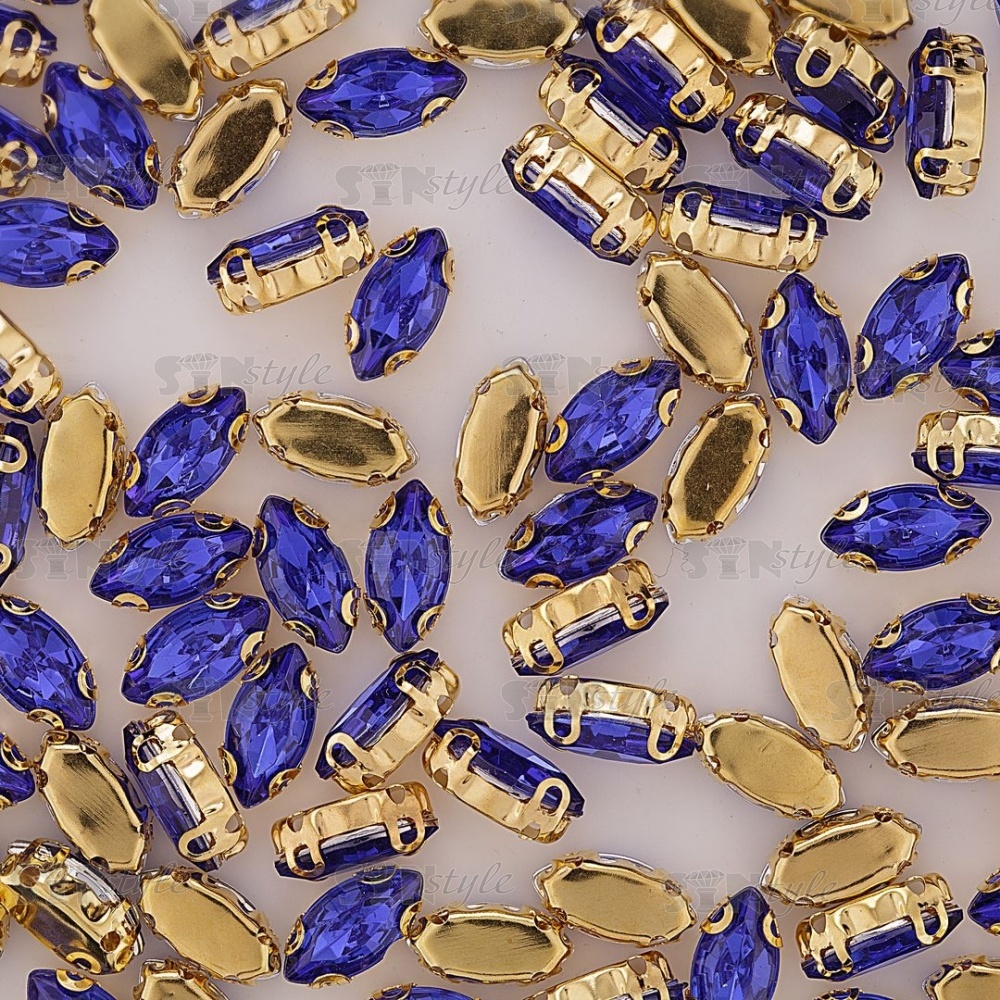 Стразы пришивные акриловые в цапах, форма лодочка, цвет золото+синий, размер 5х10 мм, 200 шт/уп