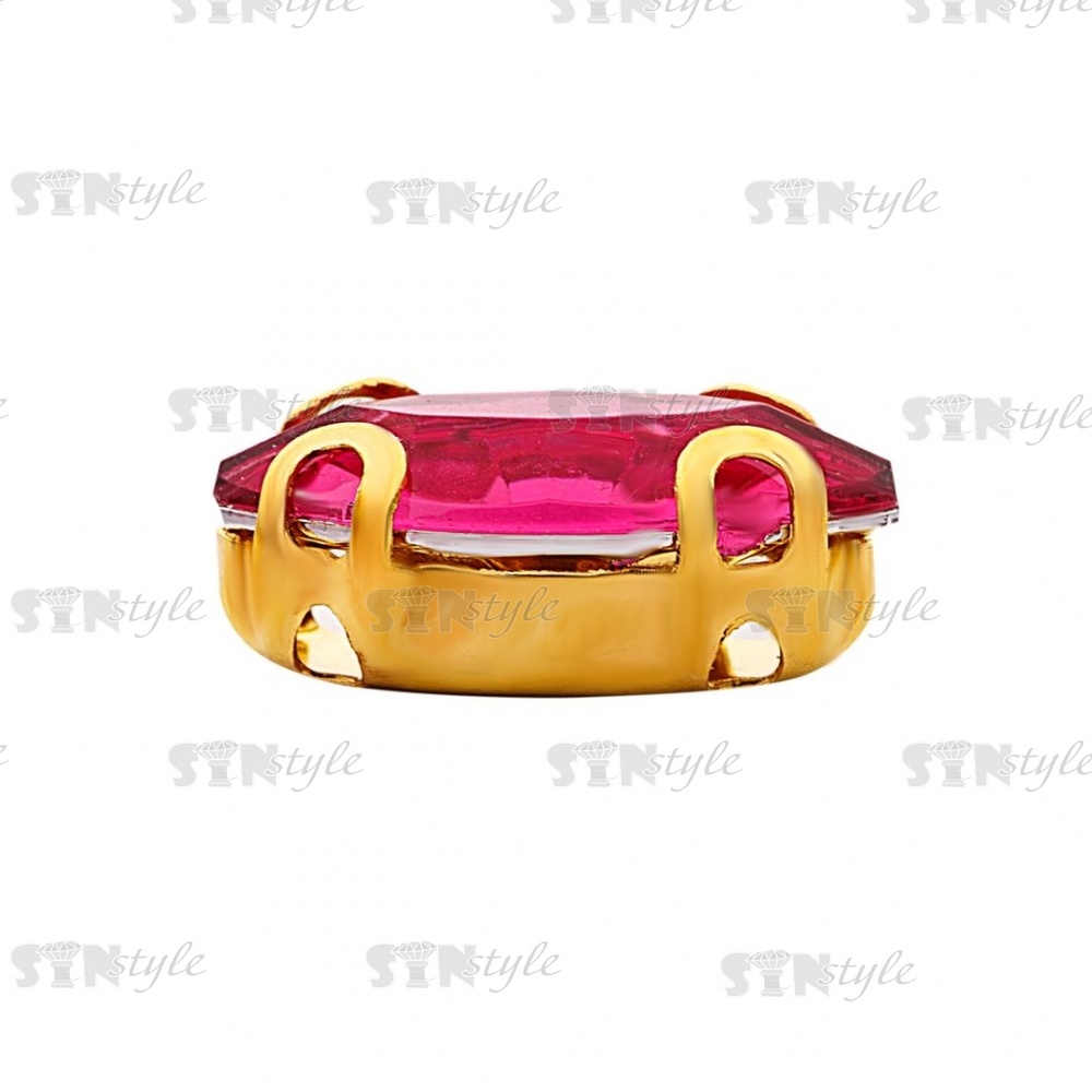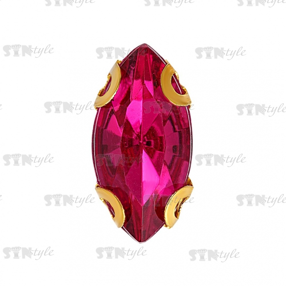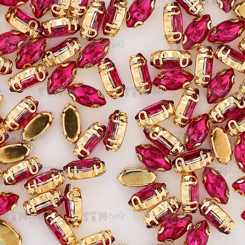Стразы пришивные акриловые в цапах, форма лодочка, цвет золото+малиновый, размер 5х10 мм, 200 шт/уп.