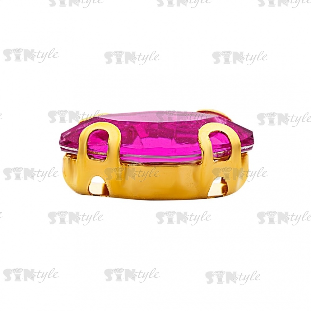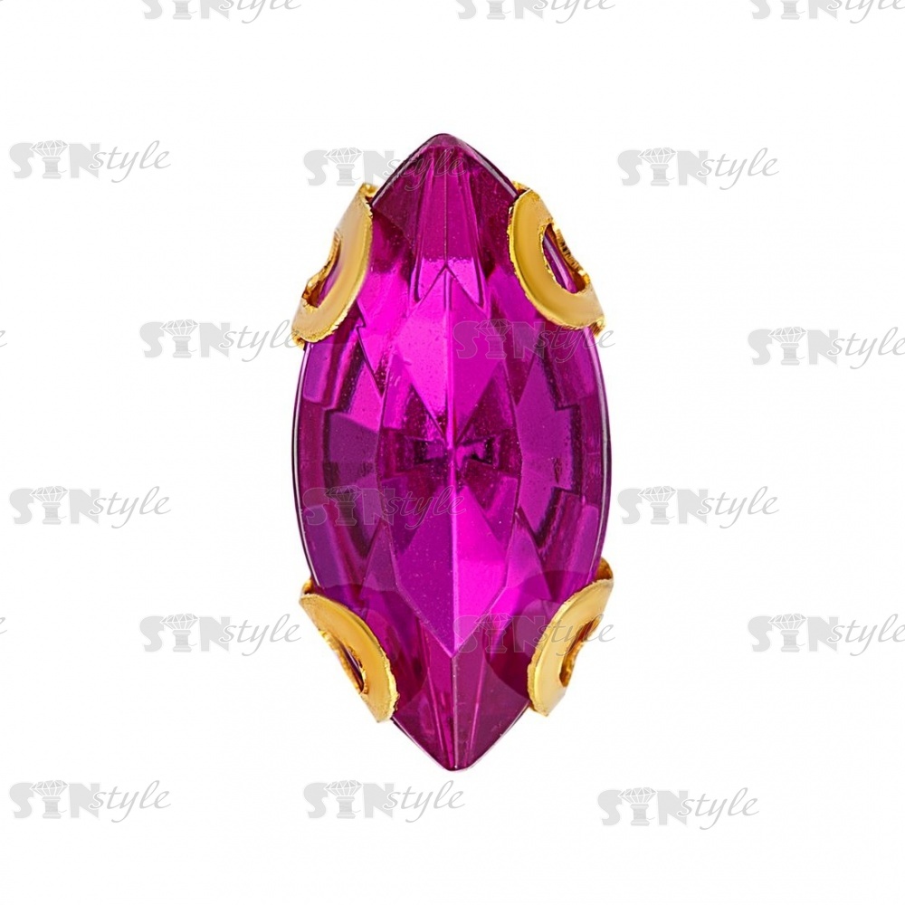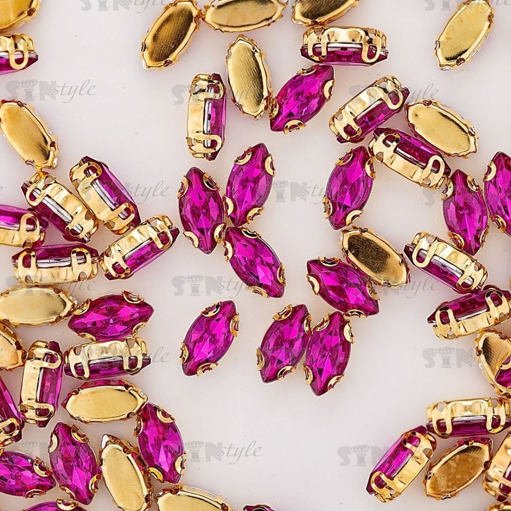 Стразы пришивные акриловые в цапах, форма лодочка, цвет золото+фуксия, размер 5х10 мм, 200 шт/уп.