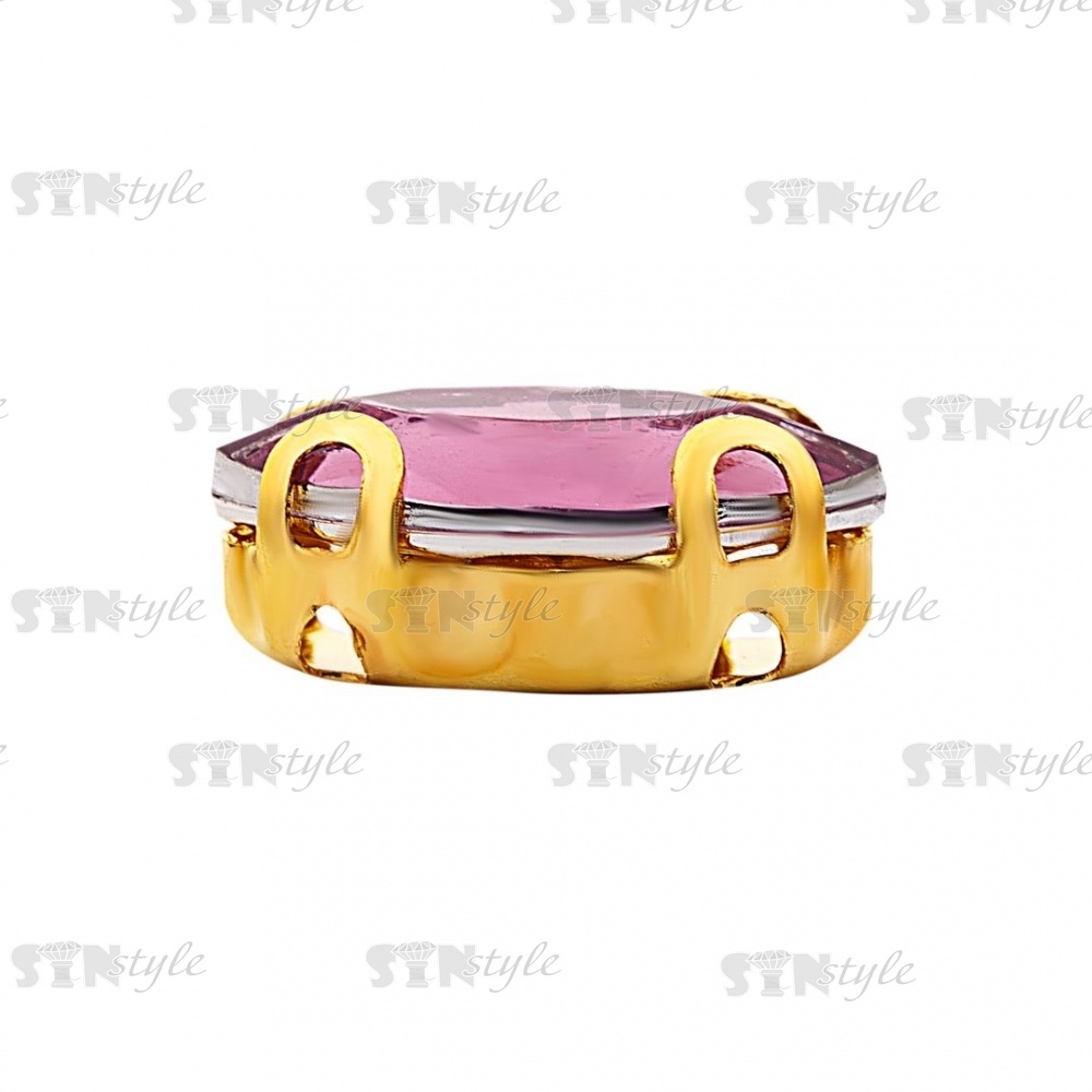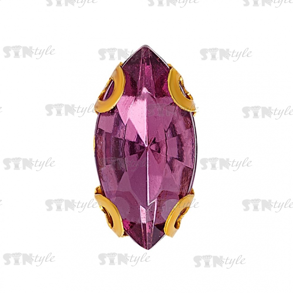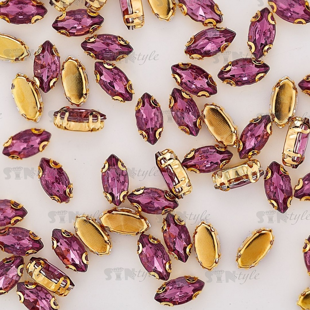 Стразы пришивные акриловые в цапах, форма лодочка, цвет золото+светло-фиолетовый, размер 5х10 мм, 200 шт/уп.
