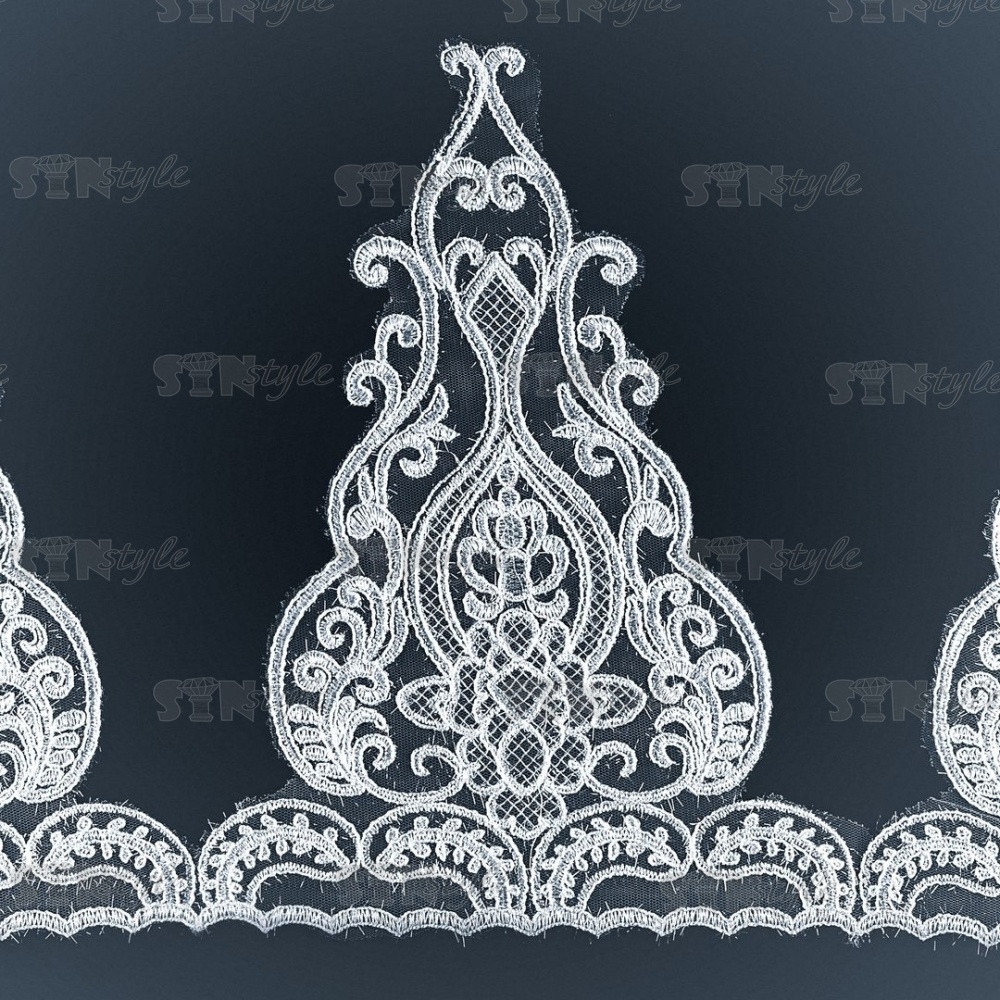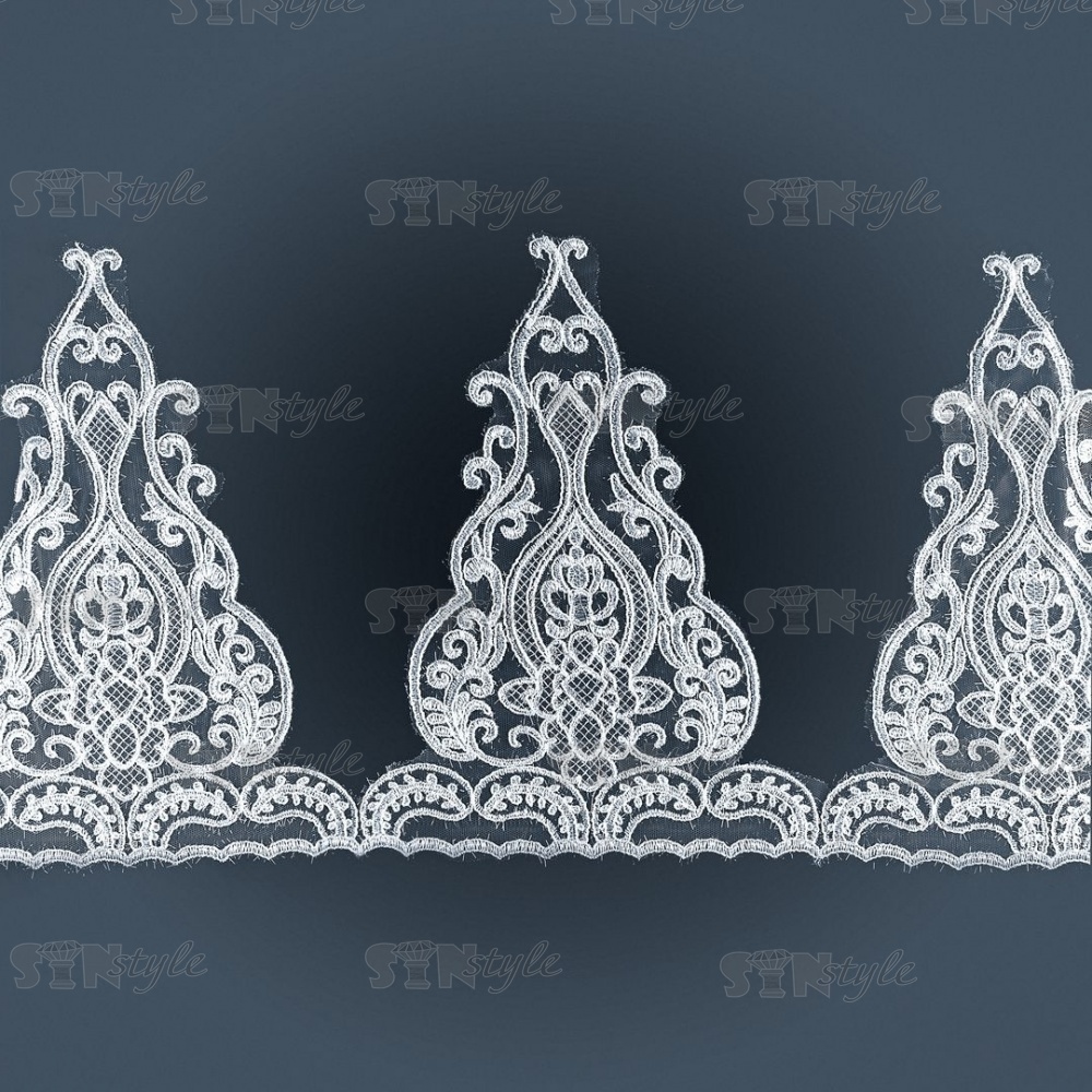 Кружево гипюр, ширина 310 мм, цвет сияющий белый, намотка 10 ярдов