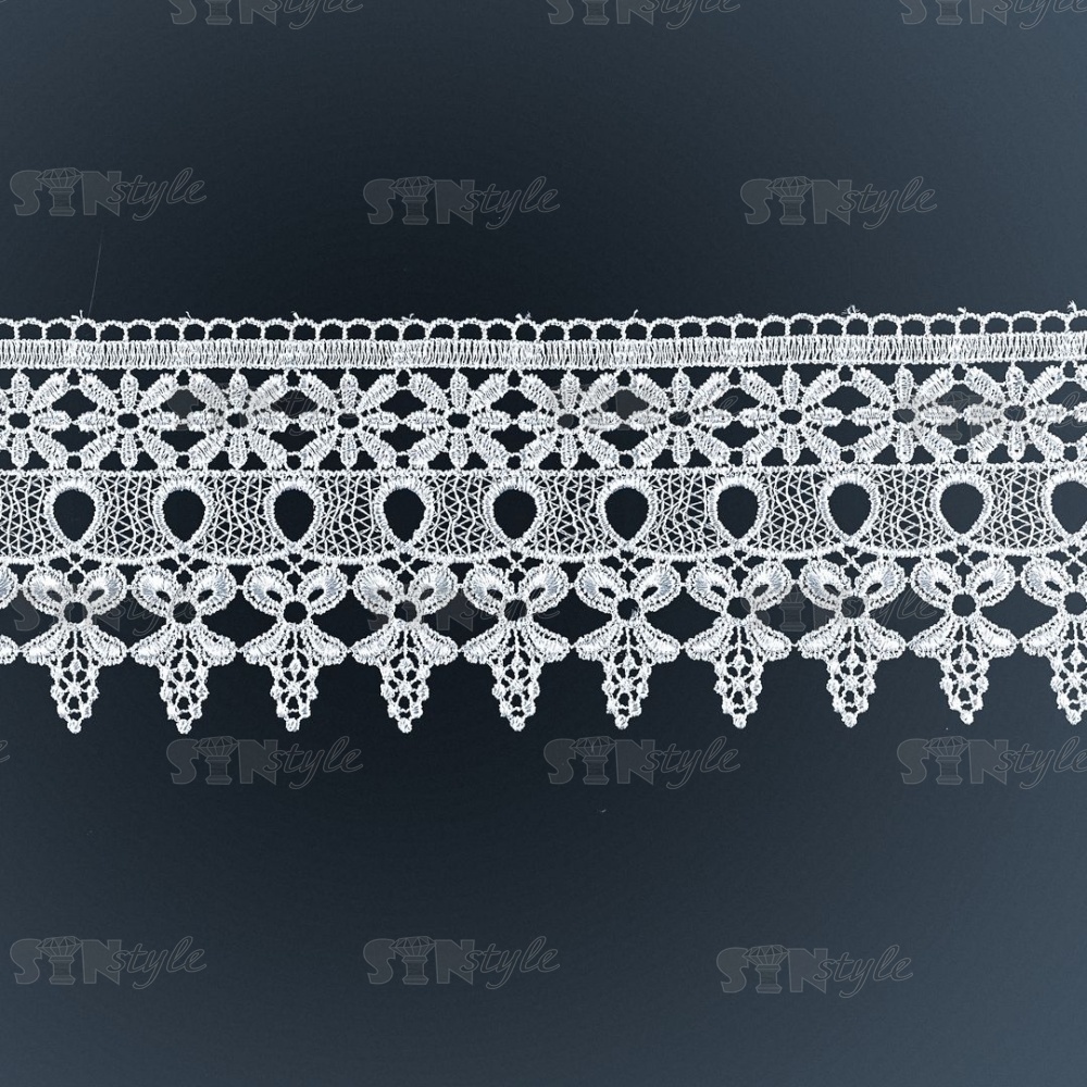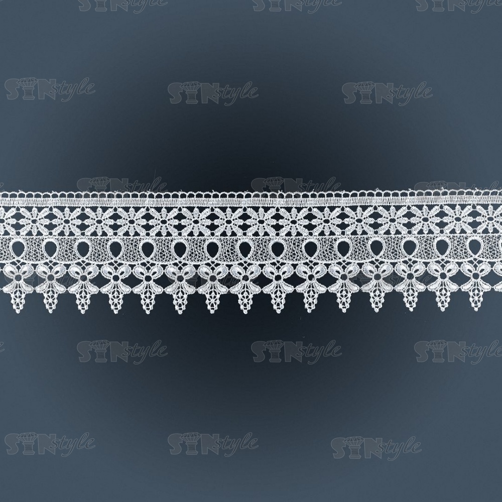 Кружево ажурное с нежным растительным орнаментом и фестонами по краям, ширина 110 мм, цвет белый, намотка 15 ярдов