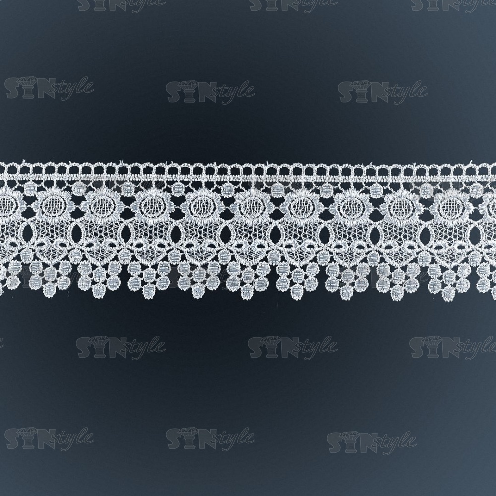 Кружево ажурное с цветочным узором, ширина 80 мм, цвет белый, намотка 15 ярдов