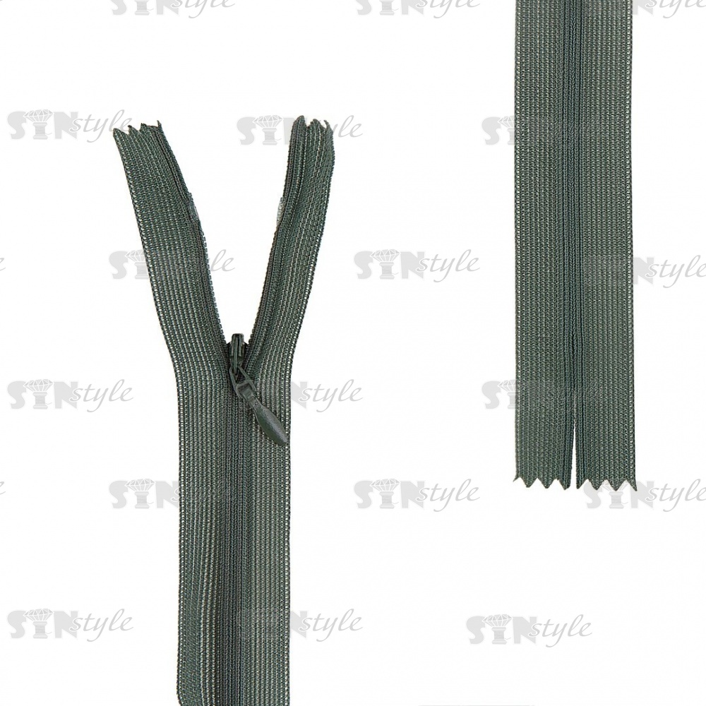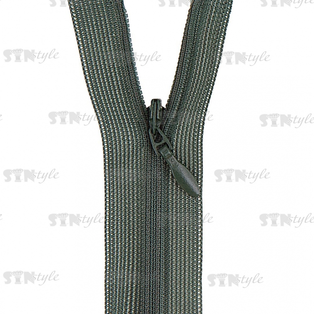 Молния спираль, тип 3, потайная, неразъемная, основа капрон, длина 50 см, цвет 265 (темно-зеленый), бегунок цвета основы