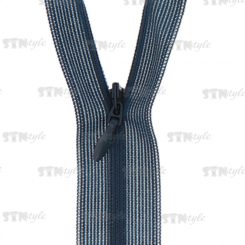 Молния спираль, тип 3, потайная, неразъемная, основа капрон, длина 50 см, цвет 390 (темно-бирюзовый), бегунок цвета основы
