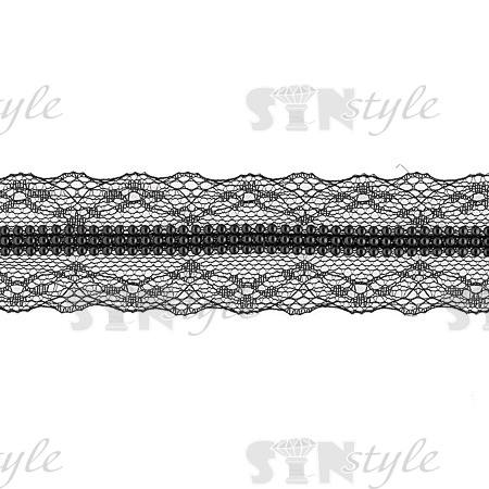 Кружево ажурное с отделкой стразами, ширина 35 мм, цвет черный, намотка 10 ярдов