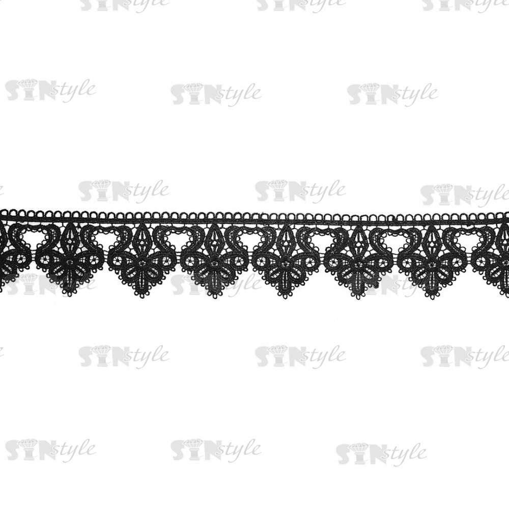Кружево ажурное матовая нить, ширина 75 мм, цвет черный, намотка 15 ярдов