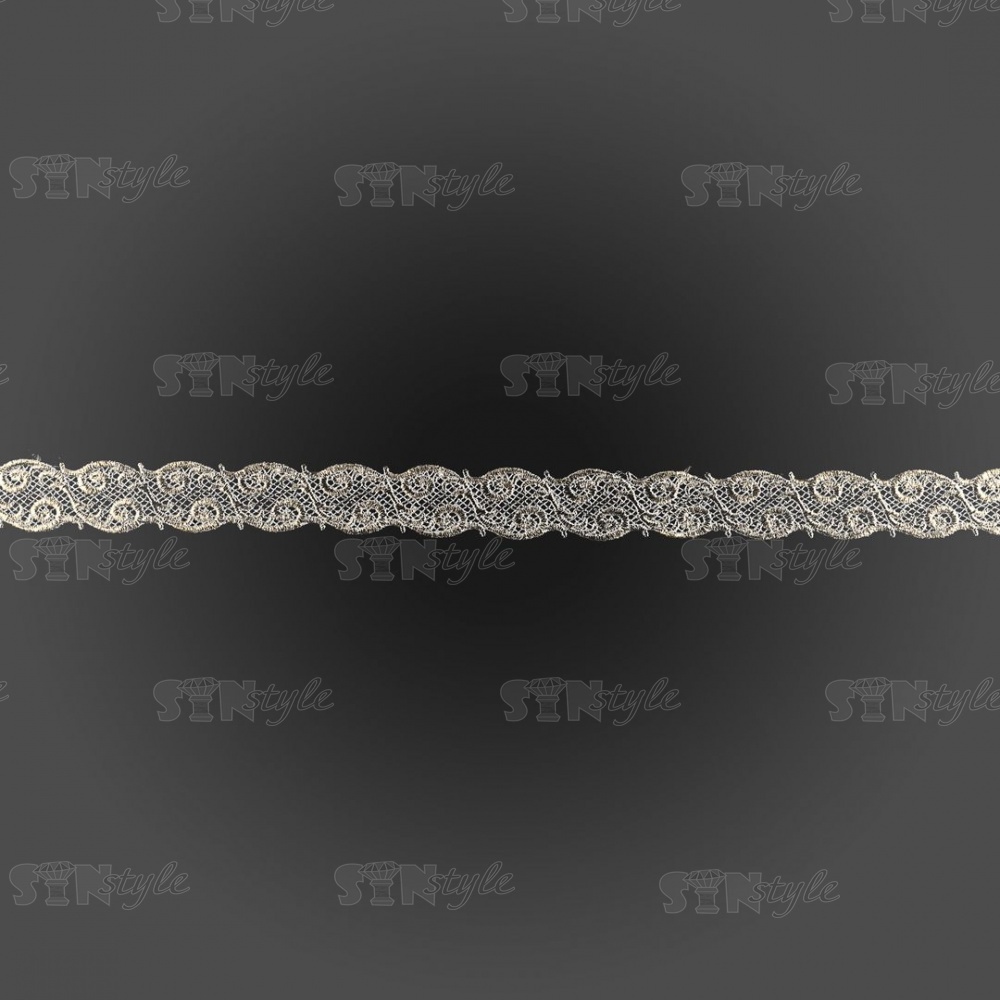 Кружево вязаное ажурное, цвет белый с золотом, намотка 15 ярдов, ширина 30 мм