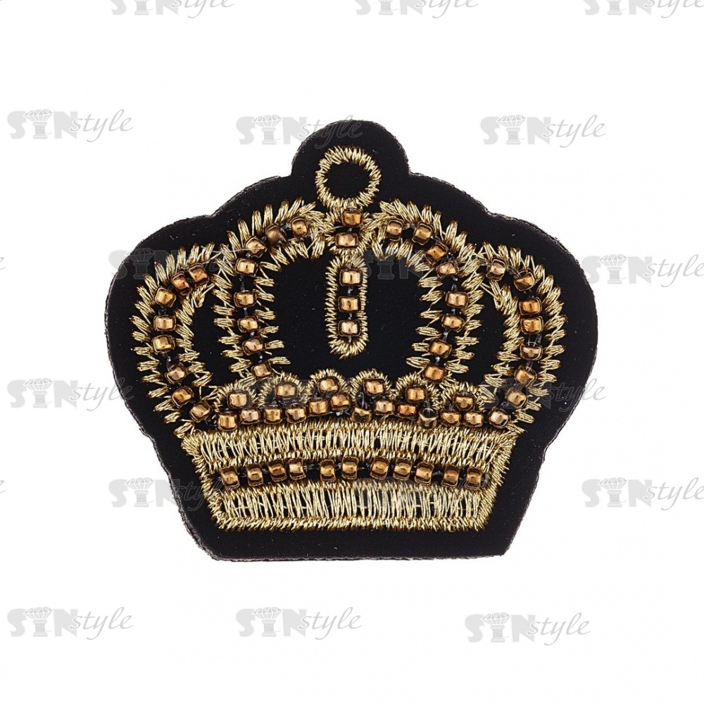 Декоративное украшение пришивное металлическое, размер 23 мм х 15 мм, цвет золотой+белые стразы