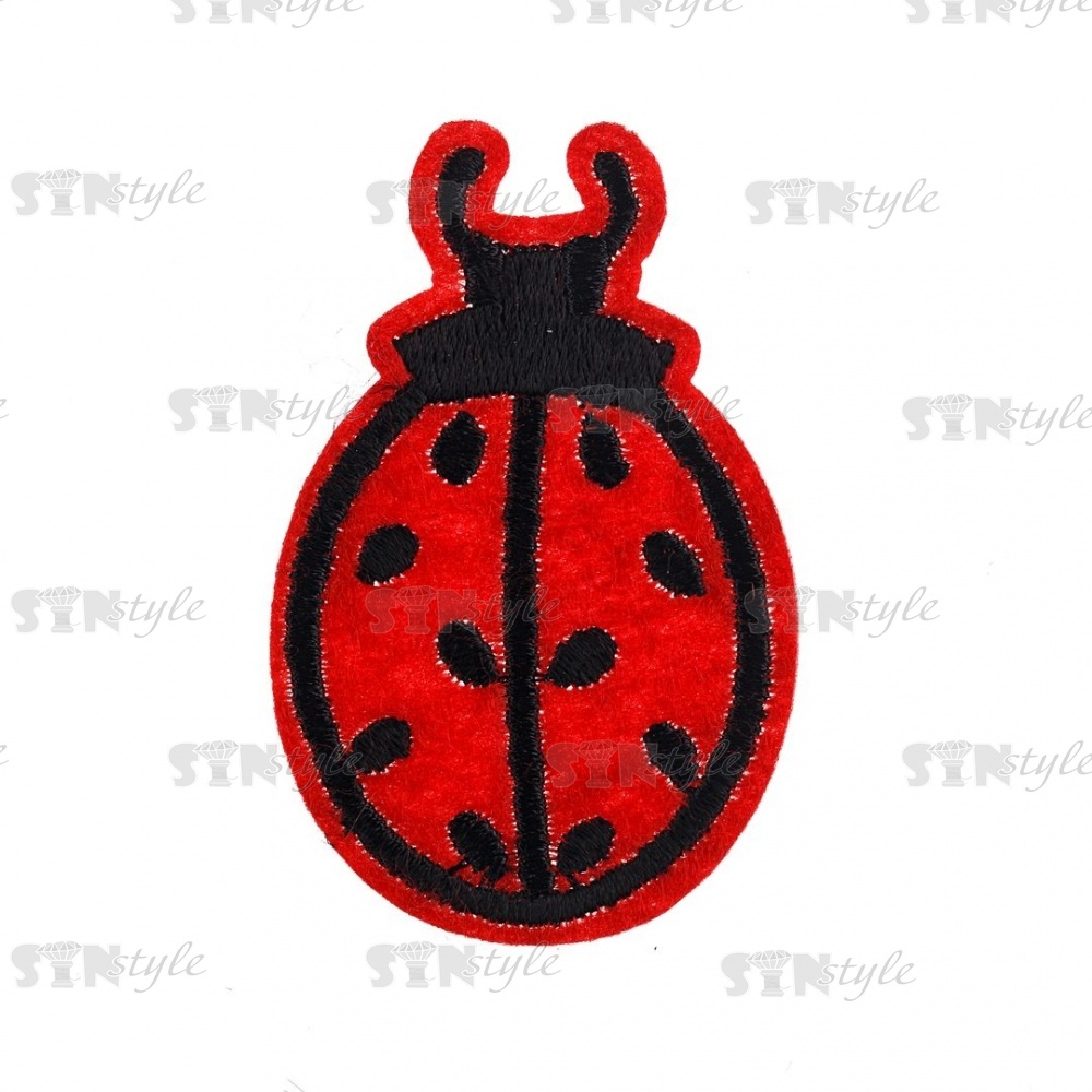 Термоаппликация "Божья коровка", размер 60х38 мм, черная вышивка на красной основе