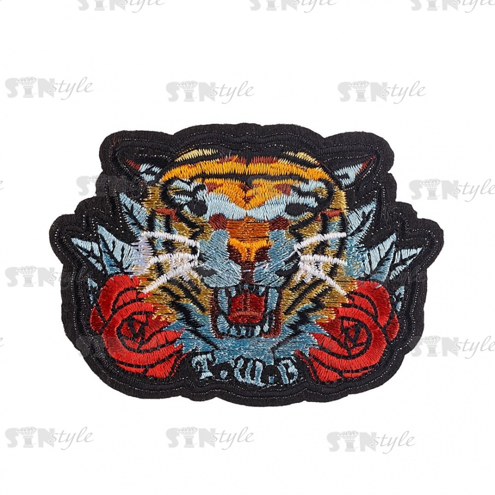 Термоаппликация "Тигр", размер 85х60 мм, цвет красный+желтый+голубой/основа черная