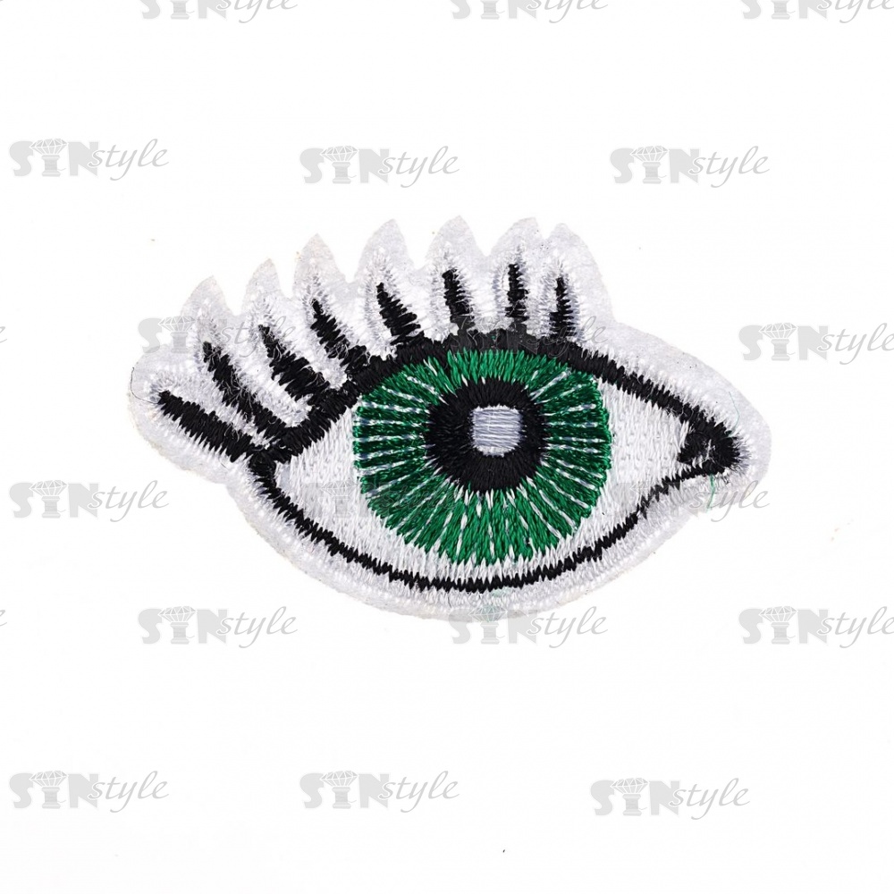 Термоаппликация "Глаз", размер 50х32 мм, цвет белый+черный+зеленый/основа белая