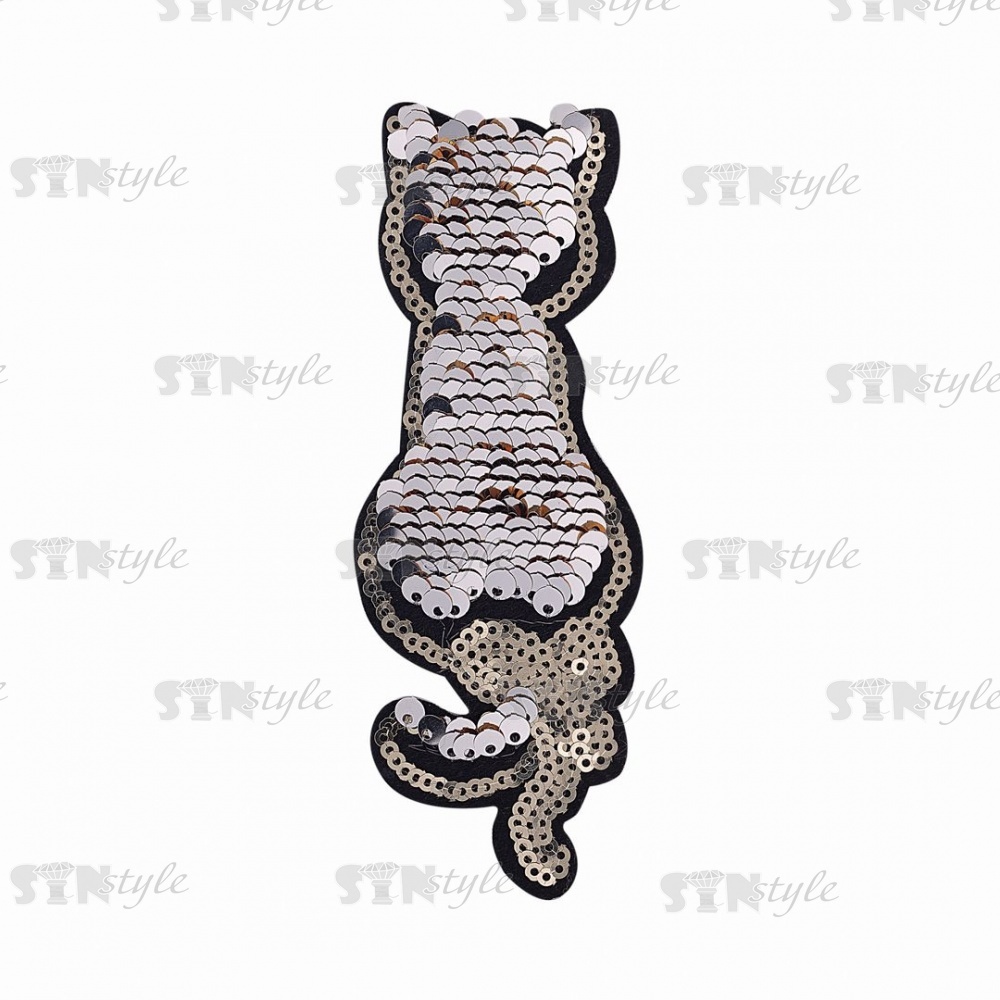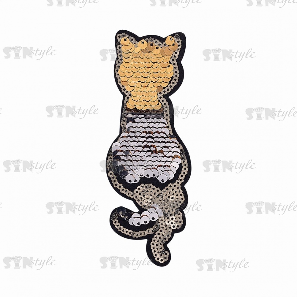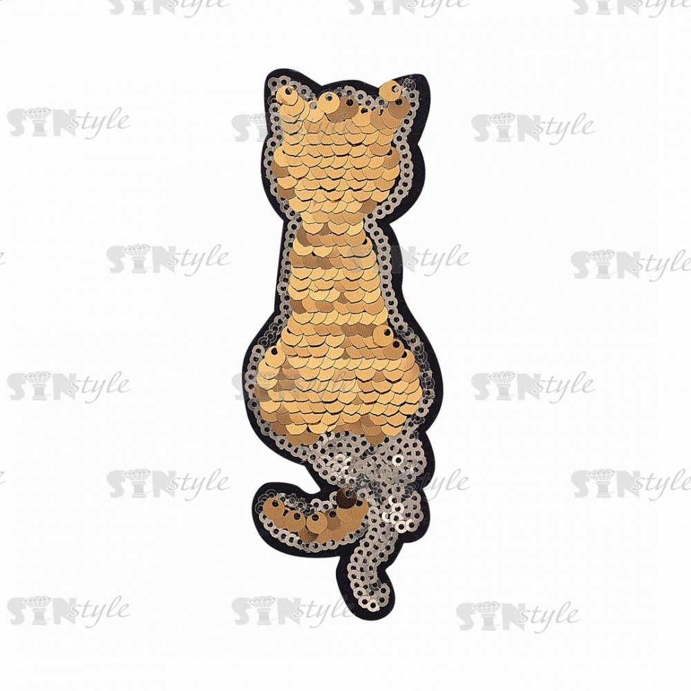 Термоаппликация-перевертыш из двухсторонних пайеток "Кошка", размер 40х115 мм