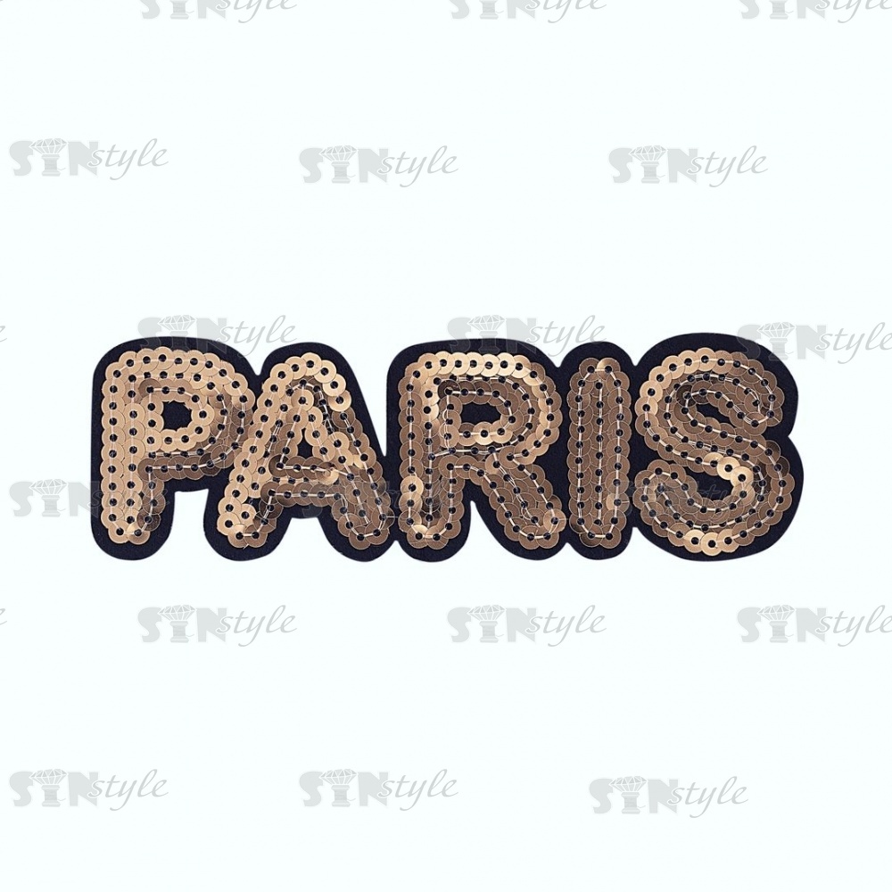 Термоаппликация "PARIS" с пайетками, размер 145х45 мм, цвет золото/основа черная