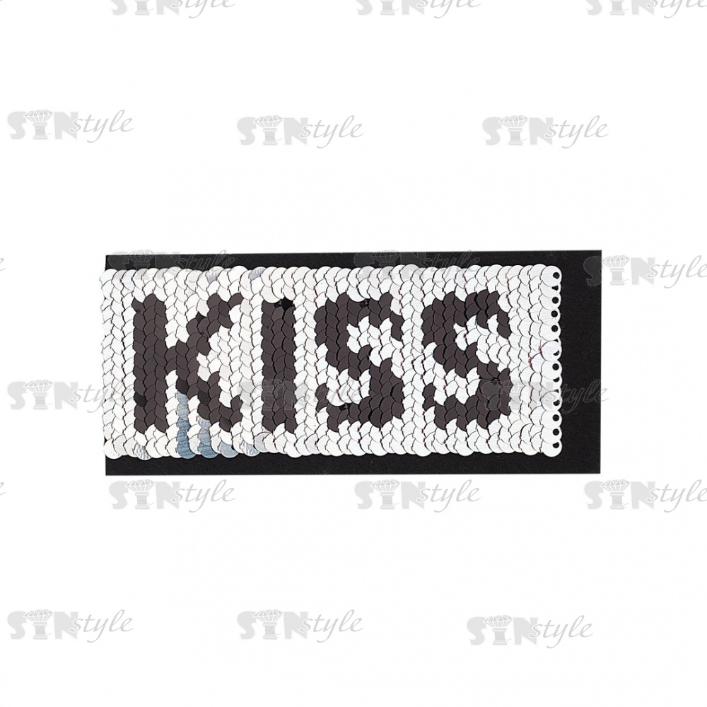Термоаппликация-перевертыш из двухсторонних пайеток "KISS", размер 112х50 мм