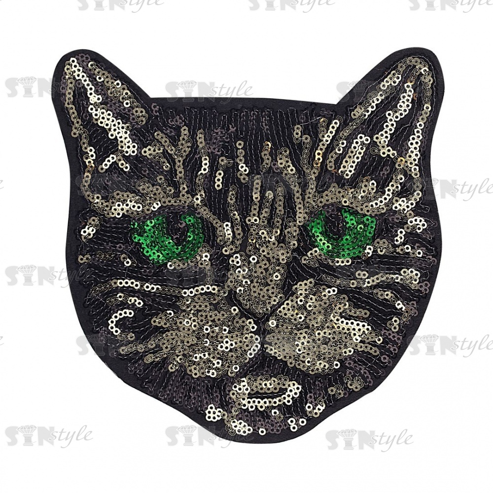 Термоаппликация "Кошка" с пайетками, размер 160х160 мм